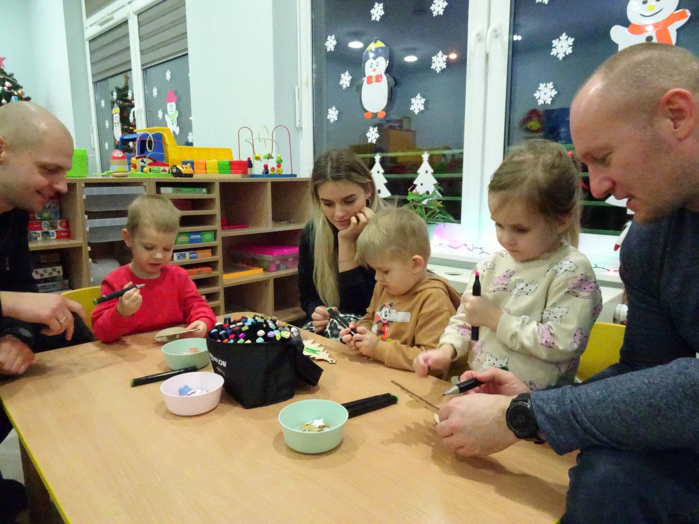 W poniedziałek, 16 grudnia 2024 r. odbyły się w gr. I ,,Cytrynki'' zajęcia otwarte z rodzicami ,,W świątecznym nastroju''. Dzieci miały okazję pokazać, jak duże zrobiły postępy i czego się nauczyły od początku roku szkolnego. ,,Cytrynki'' recytowały wiersz o choince i zaśpiewały pięknie piosenkę o Mikołaju. W zabawach matematycznych ozdabiały choinkę odpowiednią ilością pomponów, czyli bombek. Nakarmiły też Mikołaja, przeliczając przy okazji ciasteczka, które nasz kartonowy Mikołaj zajadał ze smakiem. Dzieci razem z rodzicami na warsztatach plastycznych kolorowały mazakami drewniane choinki, a następnie ozdabiały je naklejkami według własnego pomysłu. Wszystkie wyszły przepiękne i bardzo pomysłowe! Rodzicom dziękujemy za obecność i zabawę z naszymi ,,Cytrynkami''.