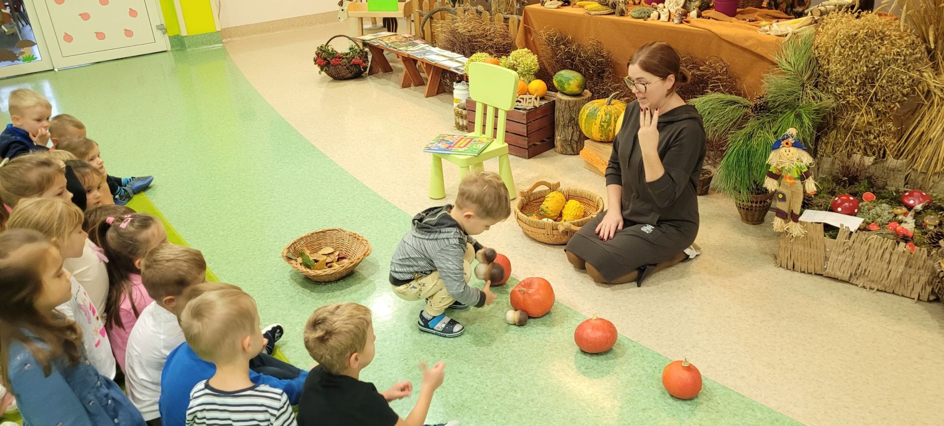 W piątek (27 października) „Brzoskwinki” obchodziły „Dzień Dyni” . Wielką niespodziankę zrobiła nam Pani Irenka z „Cytrynek” i zaszczyciła nas swoją obecnością w Muzeum Przyrodniczym. Pani Irenka w ramach akcji „Cała Polska czyta dzieciom” zaprosiła dzieci do wysłuchania wiersza „Głodne dynie” autorstwa Anny Wójcik. Dzieci tak bardzo skupiły uwagę na jego słuchaniu, że bez trudu udało im się przyporządkować elementy pasujące do poszczególnych dyń a przy okazji utrwaliły dary, które daje nam jesień.