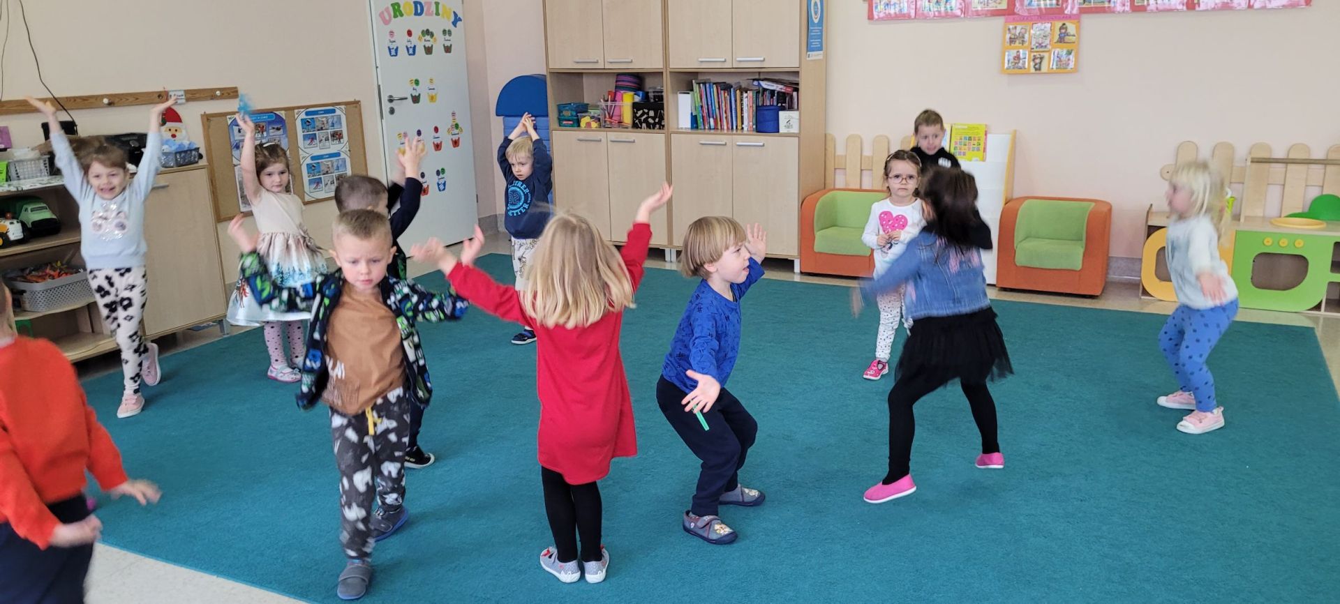 W mijającym tygodniu podczas realizacji bloku tematycznego „To już zima” „Brzoskwinki” zapoznały się z charakterystycznymi cechami pory roku, dowiedziały się w jaki sposób ludzie przygotowują się do nadejścia zimy. „Brzoskwinki” ćwiczyły pamięć podczas nauki wiersza „Biała zima”. Uczestniczyły w zabawie matematycznej „Ile płatków dzieci mają?” podczas której tworzyły zbiory równoliczne i nierównoliczne, porównywały liczebności zbiorów poprzez szacowanie „na oko”, „Brzoskwinki” doskonaliły sprawność manualną w trakcie rysowania kredkami pastelowymi zimowego krajobrazu, rozwijały wrażliwość muzyczną, doskonaliły pamięć odtwórczą poprzez naukę piosenki.