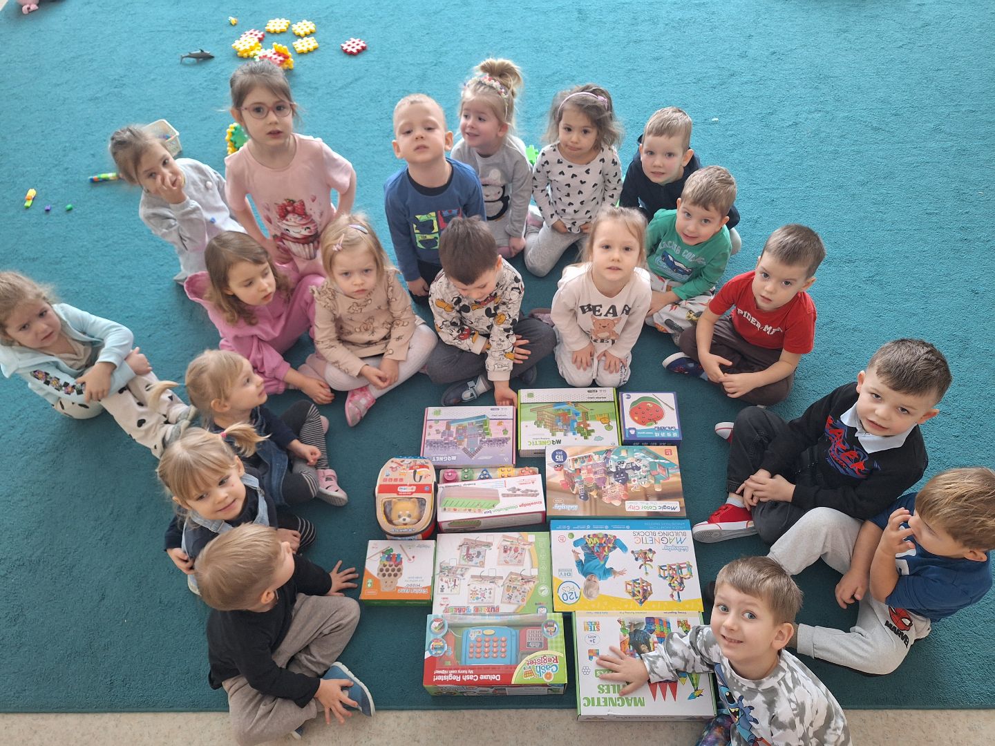 (zakupione zabawki : domek dla lalek, drewniany domek Wieś Farma, kosmetyczka - studio urody, klocki magnetyczne  2 zestawy, drewniana gąsienica magnetyczna oraz łowienie rybek - gry zręcznościowe, sorter układanka edukacyjna, drewniana układanka sensoryczna montessori, drewniane klocki - miasto, transporter dla pieska - koszyk piknikowy, kasa interaktywna,  duże klocki magnetyczne, tablica dwustronna magnetyczna oraz do pisania oraz klocki konstrukcyjne).