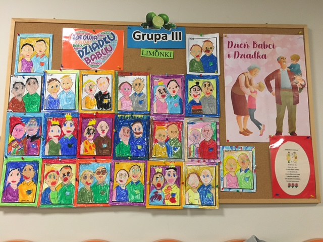 W czwartek 21 stycznia odbyła się w grupie uroczystość z okazji Dnia Babci i Dziadka. Niestety tym razem bez udziału naszych Dziadków, ale miejmy nadzieję, że za rok wszyscy razem się spotkamy. Na tę uroczystość nauczyliśmy się wierszyków i piosenek a także tańca. Każdy wykonał laurkę przedstawiające drzewo genealogiczne oraz portret babci i dziadka. Film z tego dnia będzie można obejrzeć w zakładce NASZE SUKCESY-FILMY I PREZENTACJE.
