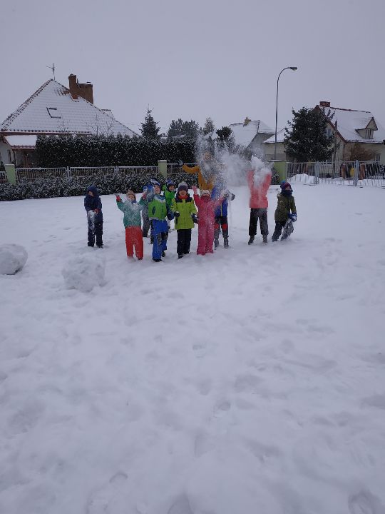 Podczas tegorocznych ferii dopisuje nam piękna zima! Korzystając z pogody, w ciepłych ubraniach, szalejemu po śniegu ile się da! :) Śniegowe kule, śnieżne aniołki i bitwa na śnieżki to nasze ulubione zajęcia. Zachęcamy do aktywnego wypoczynku podczas ferii!