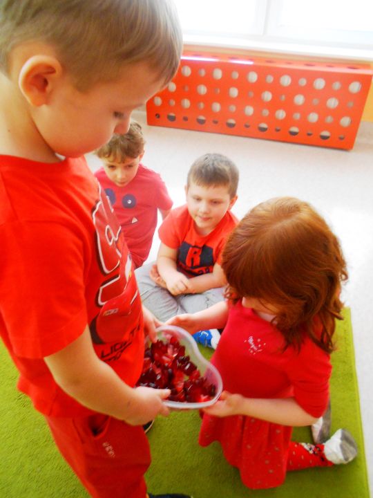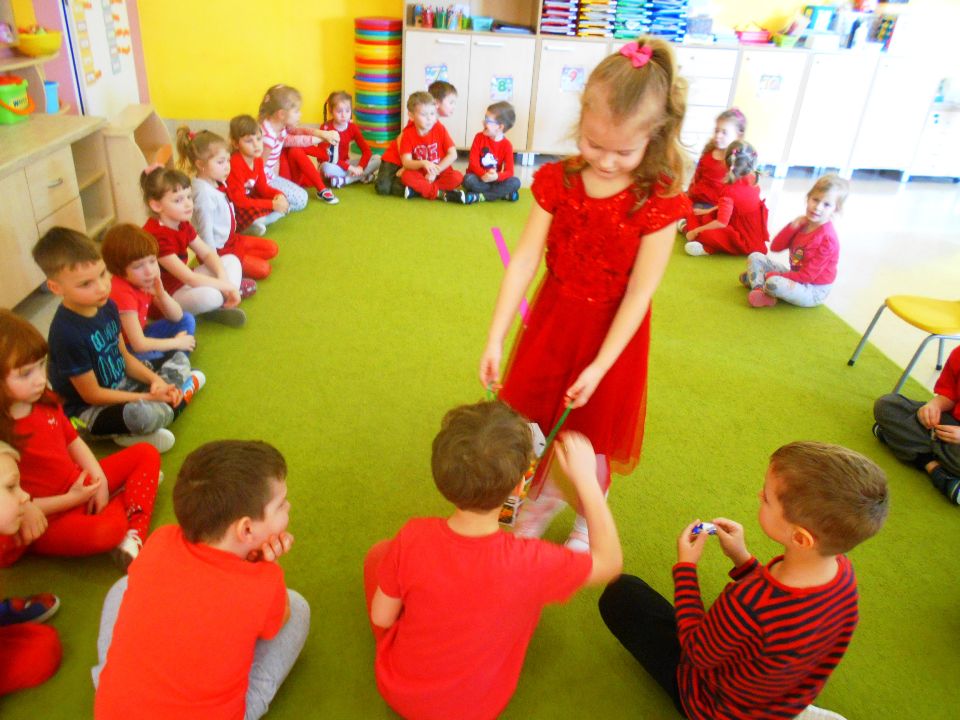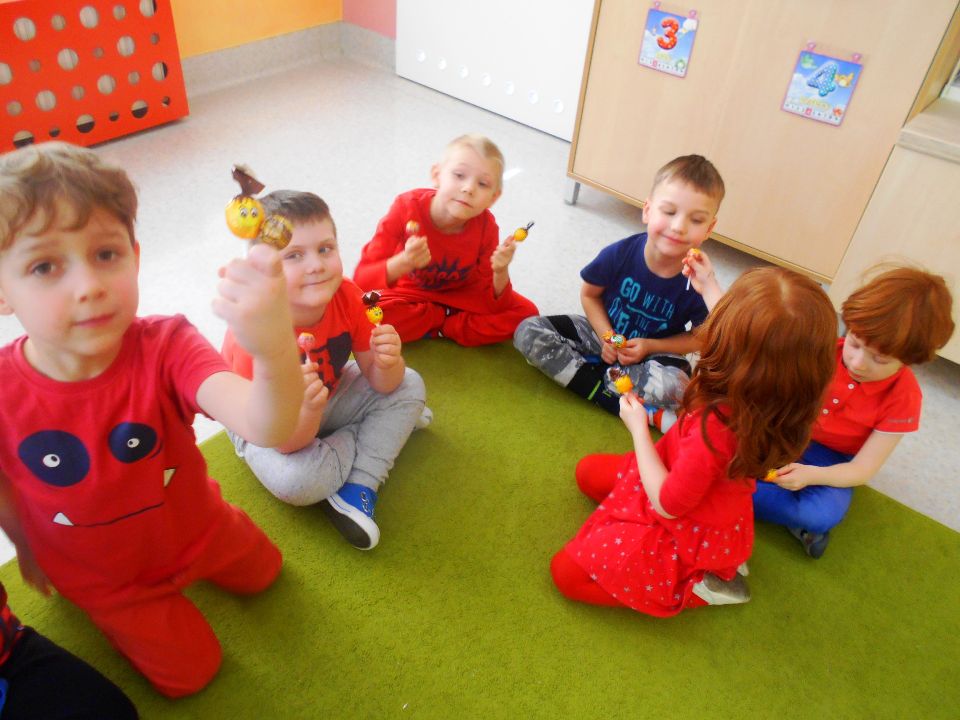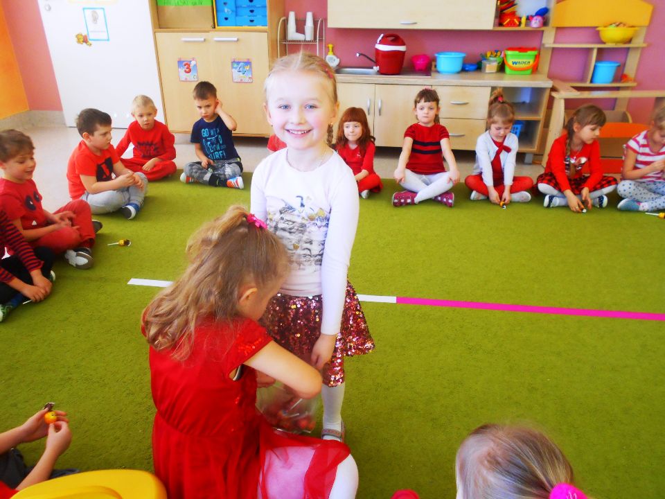 14 lutego obchodziliśmy w naszym przedszkolu „Walentynki”. Z okazji tego, jakże miłego święta obdarowywaliśmy się uśmiechami, życzeniami i własnoręcznie wykonanymi serduszkami. W tym dniu po hucznej i wesołej zabawie z Amorkiem oraz panem Żabą, na grupę „Mandarynki” czekała jeszcze jedna miła niespodzianka w sali. A to za sprawą: Ani, Laury, Wojtka i Gabrysia, którzy przygotowali dla nas walentynkowe słodkości i malowanki!