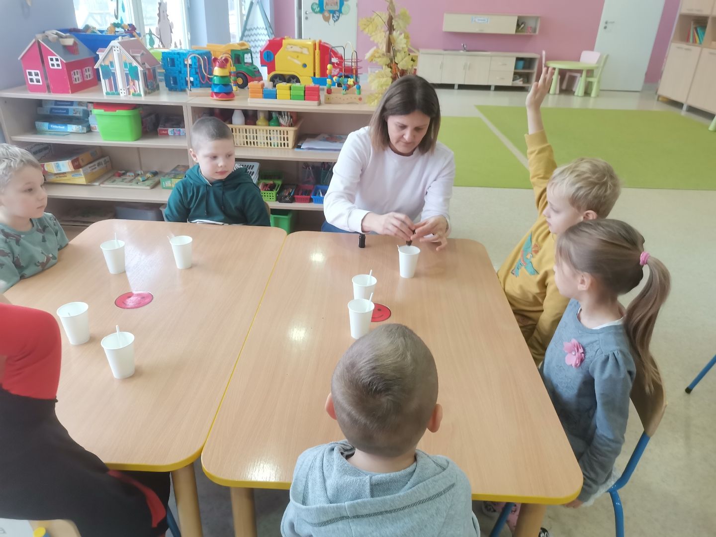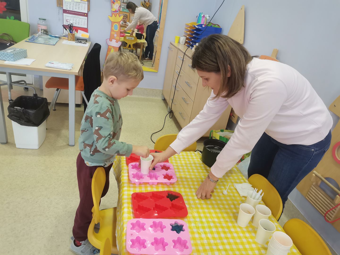 W tym tygodniu „Mandarynki” uczestniczyły w niezwykle kreatywnych warsztatach zorganizowanych przez przesympatyczną ciocię naszego Jasia P. Podczas zajęć dzieci miały niecodzienną okazję, aby własnoręcznie wyczarować urocze, pachnące mydełka. Możliwość samodzielnego wyboru kształtu, koloru a także zapachu sprawiła, że każde mydełko wyglądało jak małe „dzieło sztuki”. Z pewnością udział w warsztatach był dla naszych wychowanków nie tylko wspaniałą zabawą, ale również dużą dawką cennej wiedzy, która na długo zostanie w ich pamięci. Mamy nadzieję, że od tej pory wszystkie Mandarynki będą pamiętały o częstym i dokładnym myciu rączek przed każdym posiłkiem w przedszkolu i w domu.