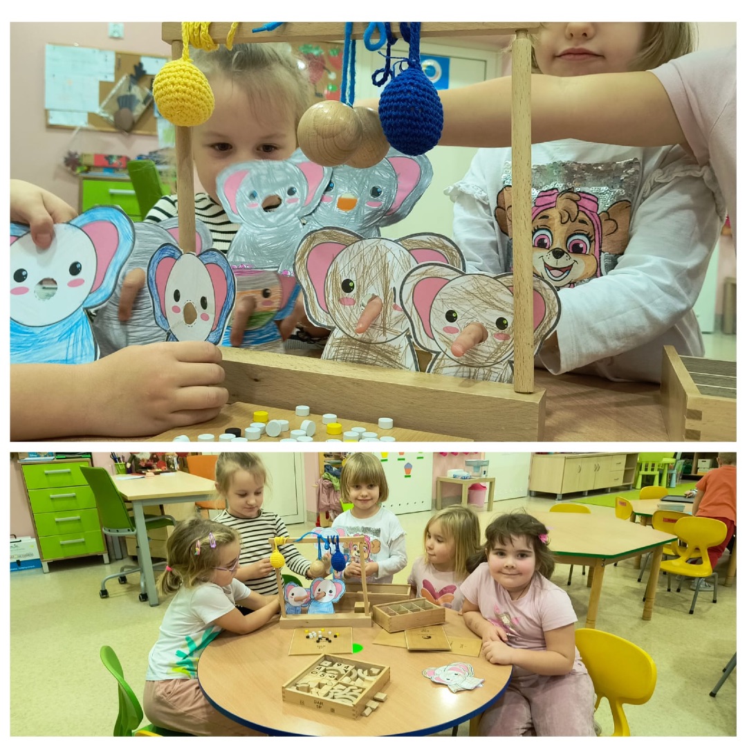 - bawiliśmy się w teatr, poznaliśmy różne rodzaje pacynek, kukiełek, rozwijaliśmy postawę widza i aktora bawiąc się w wymyślanie swoich teatrzyków dzięki darom Froebla.
