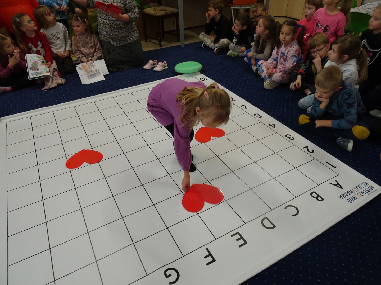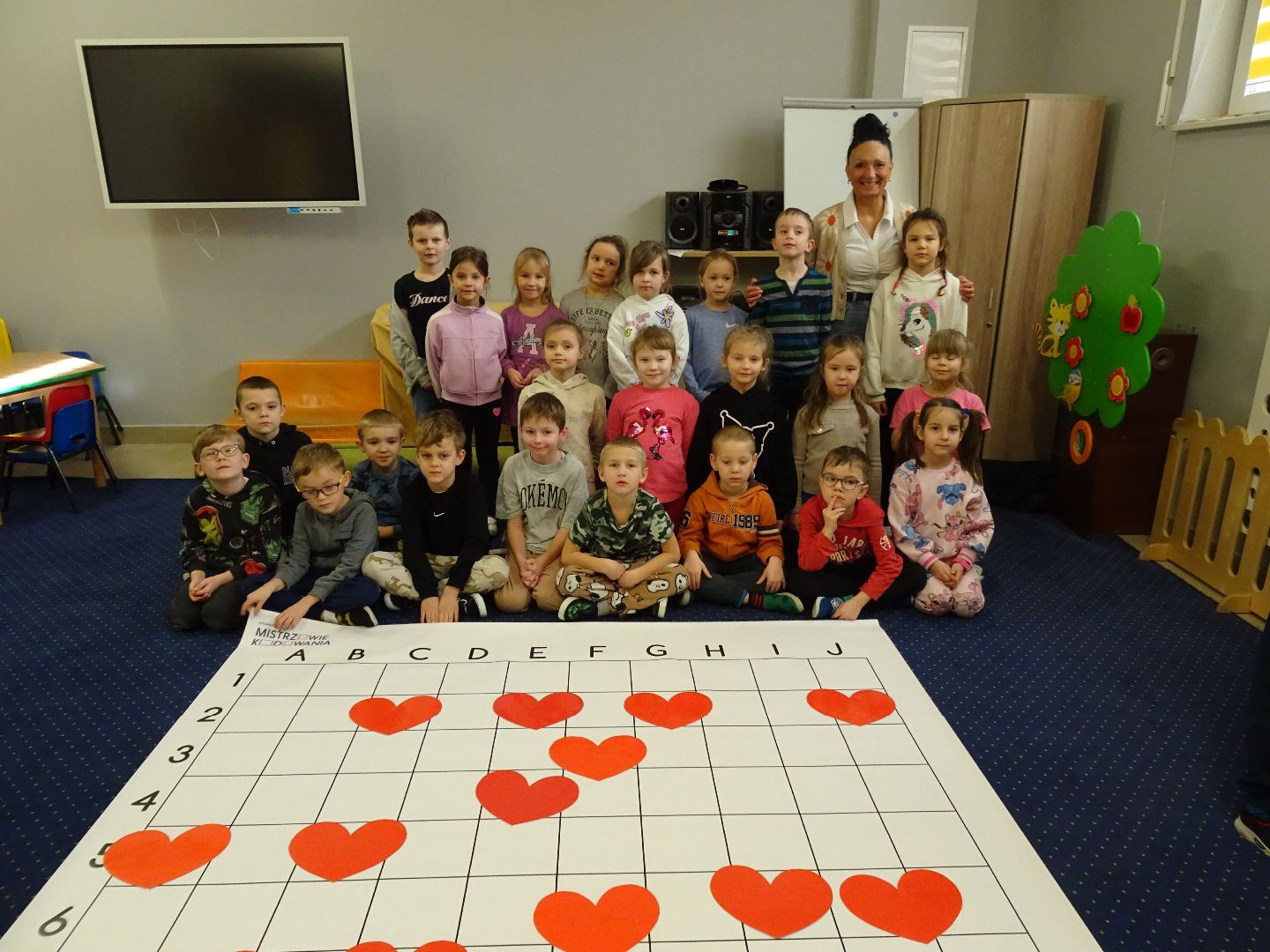 "Zakodowane serduszka" to tytuł kolejnego spotkania grup Ananasów i Kokosów w ramach spotkań "Zabawy z kodowaniem". Tym razem dzieci miały za zadanie umieścić serduszka na planszy według określonych kodów. Odbyła się też rywalizacja grup zakończona oczywiście remisem. Czekamy na następne spotkanie. Ciekawi jesteście co będzie?