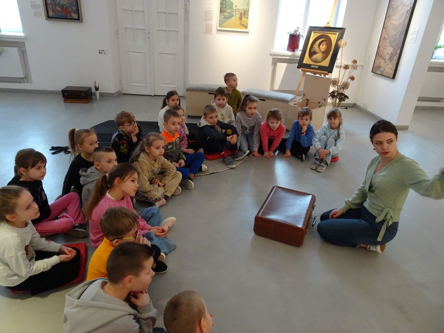 Na kolejną wycieczkę Ananasy wybrały się do muzeum Galeria im. Sleńdzińskich. Uczestniczyły w lekcji muzealnej pięknie prowadzonej przez panią kustosz. Dzieci dowiedziały się o historii rodu Sleńdzińskich, oglądały obrazy z dawnych lat Białegostoku, poznały rodzaje malarskie: obraz, płaskorzeźba, rzeźba. Najbardziej przedszkolakom podobało się odszukiwanie ducha na obrazie a następnie odgrywanie scenek dramowych, w których zamieniały się w malarzy. To były niesamowite chwile.