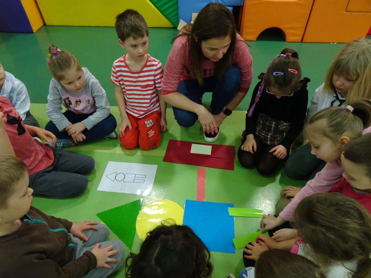 14 marca we czwartek przedszkolaki z naszego przedszkola obchodziły Międzynarodowy Dzień Matematyki. Było wesoło, zabawnie i aktywnie. Wszystkie przedszkolaki uczestniczyły w grach, zabawach matematycznych, konkurencjach gimnastycznych, tańczyły do piosenek matematycznych. Podczas zabaw grupy młodsze ( I, II, III, VIII) uczestniczyły w zabawach z figurami geometrycznymi, wytrwale ćwiczyły prawą i lewą stronę, uważnie wysłuchiwały rytm, segregowały figury geometryczne. Starsze przedszkolaki z grup ( IV,V, VI, VII) uczestniczyły w zabawach zespołowych z wykorzystaniem maty edukacyjnej, wiatraka matematycznego, logigramu i klocków.