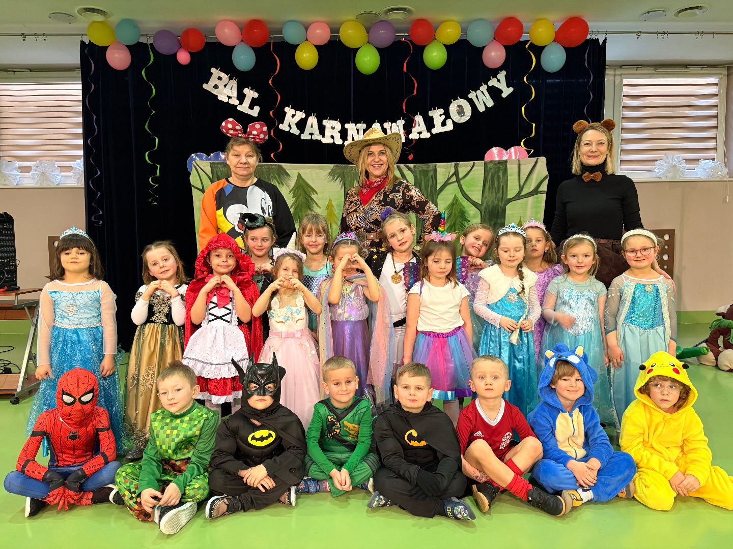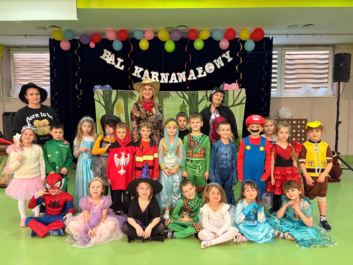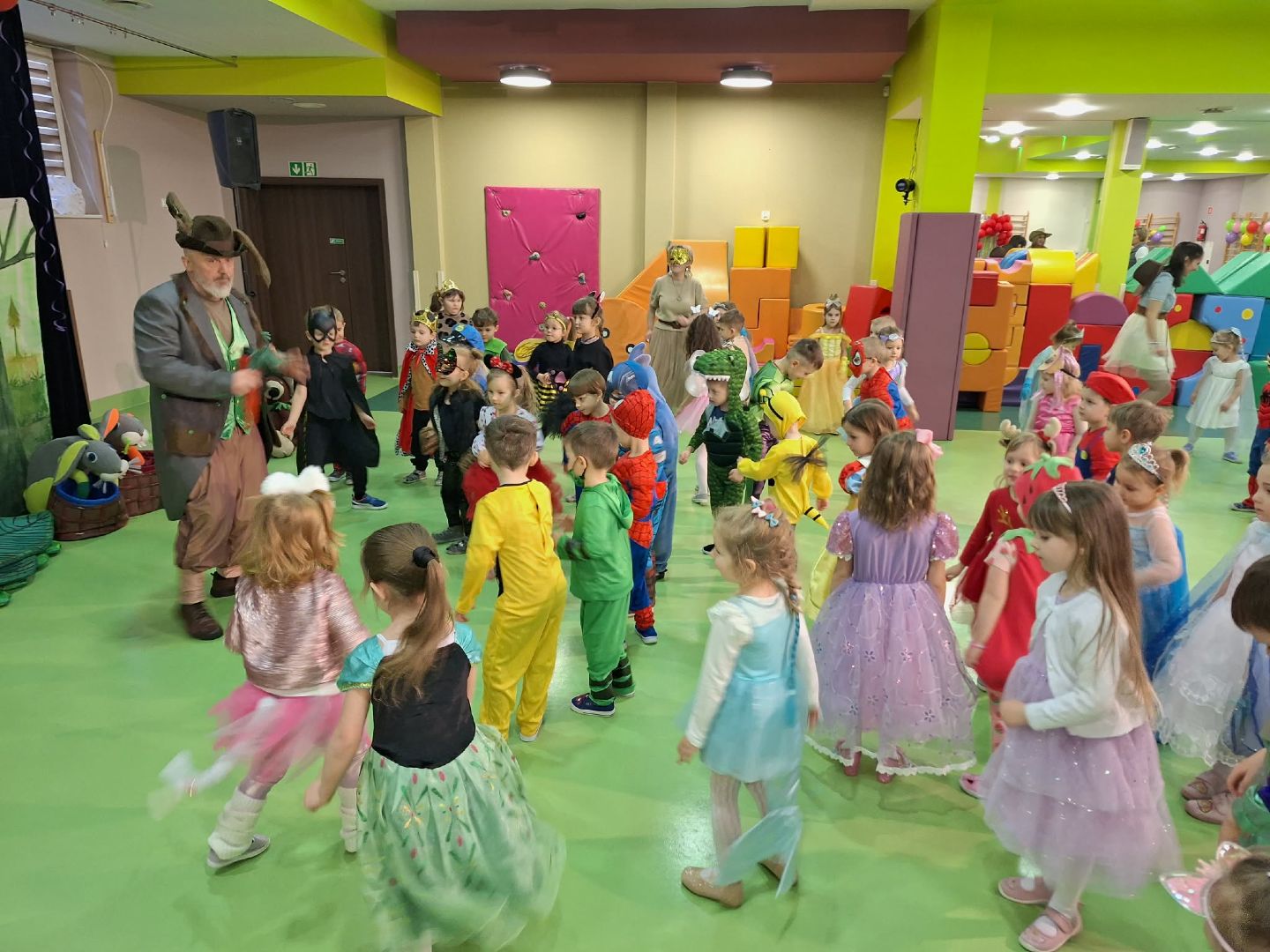 W naszym przedszkolu odbył się radosny bal karnawałowy, który dostarczył dzieciom mnóstwo uśmiechu i niezapomnianych wrażeń. Sala zamieniła się w kolorową krainę pełną bajkowych postaci – można było spotkać księżniczki, superbohaterów, zwierzątka i wiele innych fantastycznych przebrań. Dzieci chętnie brały udział w zabawach tanecznych, konkursach i wspólnych pląsach przy wesołej muzyce razem z Wiewiórką Weroniką i Zającem Zygmuntem w bajkowym lesie. Największą niespodzianką na zakończenie balu była wizyta Mikołaja, który zostawił dla nich paczki w sali, co sprawiło wszystkim ogromną radość. Bal karnawałowy był wspaniałym czasem wspólnej zabawy i na długo pozostanie w pamięci przedszkolaków. 🎭🎅