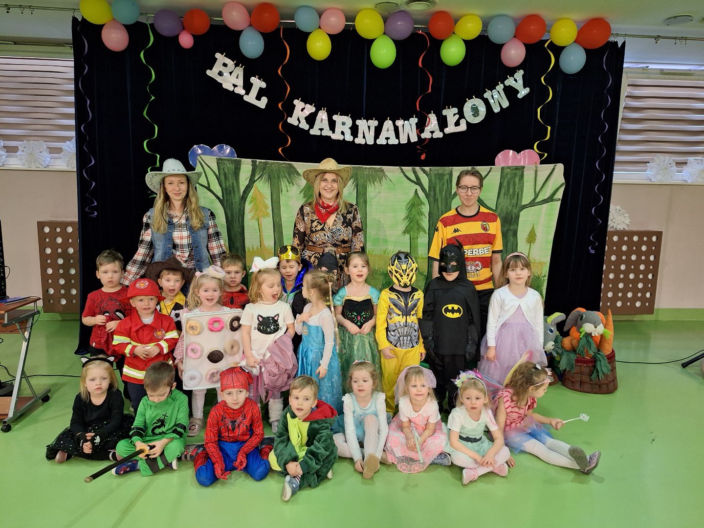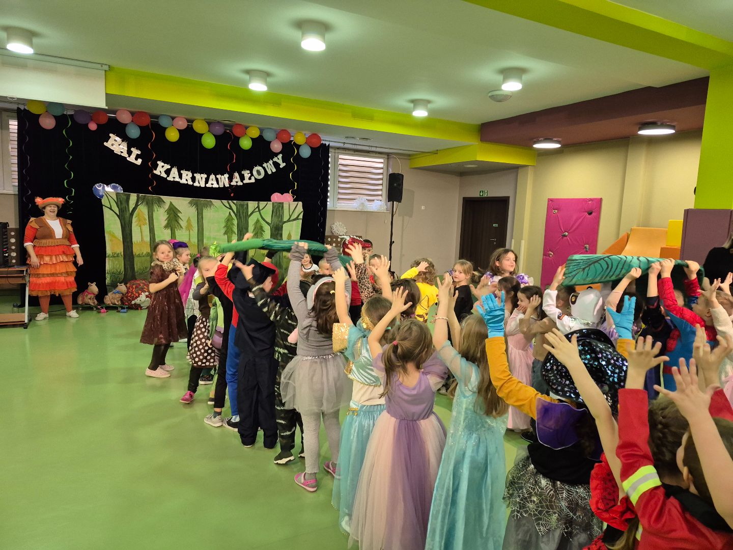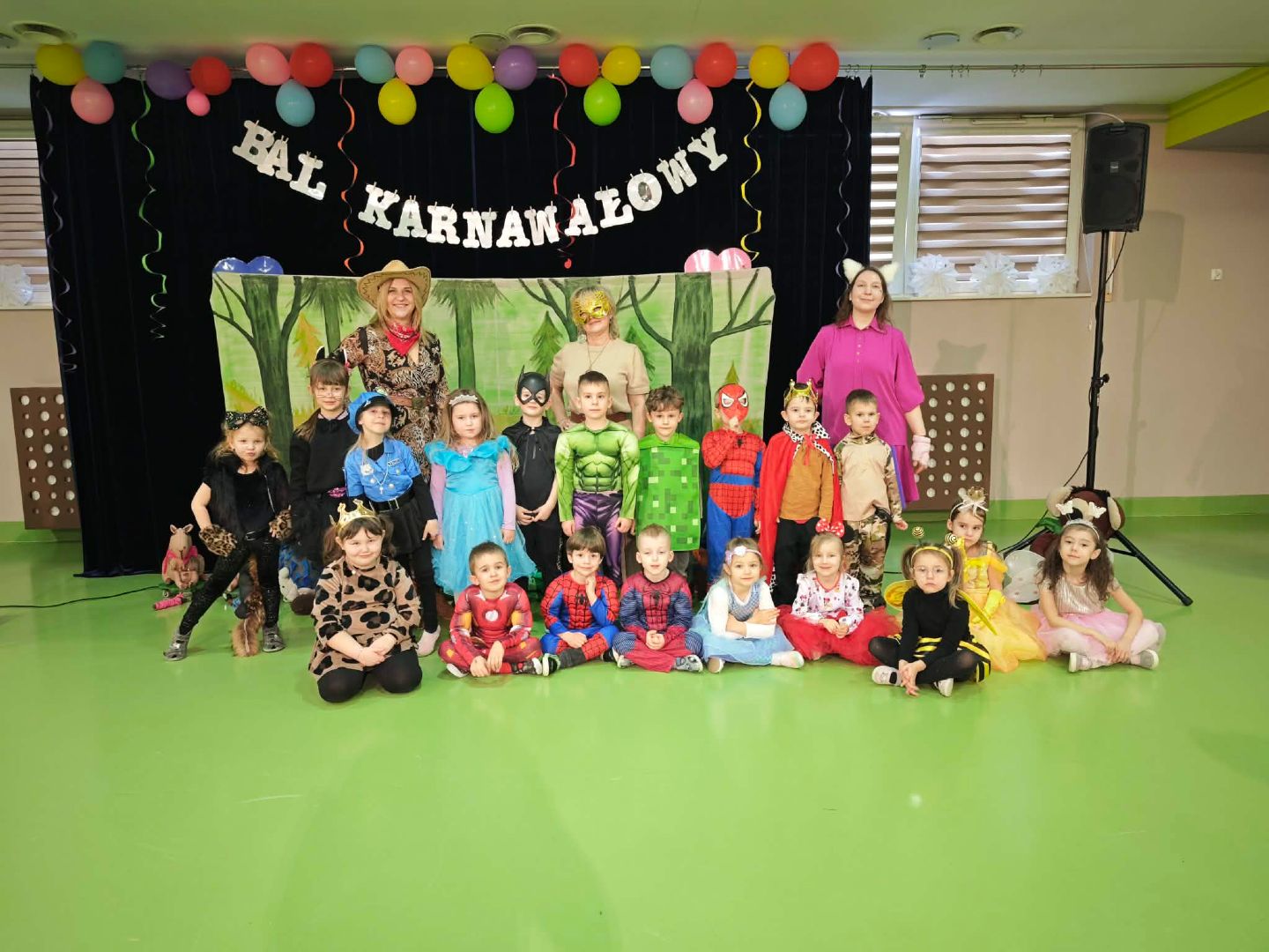 W naszym przedszkolu odbył się radosny bal karnawałowy, który dostarczył dzieciom mnóstwo uśmiechu i niezapomnianych wrażeń. Sala zamieniła się w kolorową krainę pełną bajkowych postaci – można było spotkać księżniczki, superbohaterów, zwierzątka i wiele innych fantastycznych przebrań. Dzieci chętnie brały udział w zabawach tanecznych, konkursach i wspólnych pląsach przy wesołej muzyce razem z Wiewiórką Weroniką i Zającem Zygmuntem w bajkowym lesie. Największą niespodzianką na zakończenie balu była wizyta Mikołaja, który zostawił dla nich paczki w sali, co sprawiło wszystkim ogromną radość. Bal karnawałowy był wspaniałym czasem wspólnej zabawy i na długo pozostanie w pamięci przedszkolaków. 🎭🎅