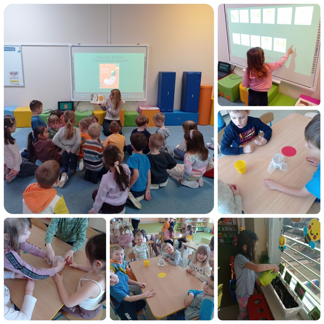 - Poznawaliśmy etapy wzrostu roślin uczestnicząc w zabawach na tablicy multimedialnej.