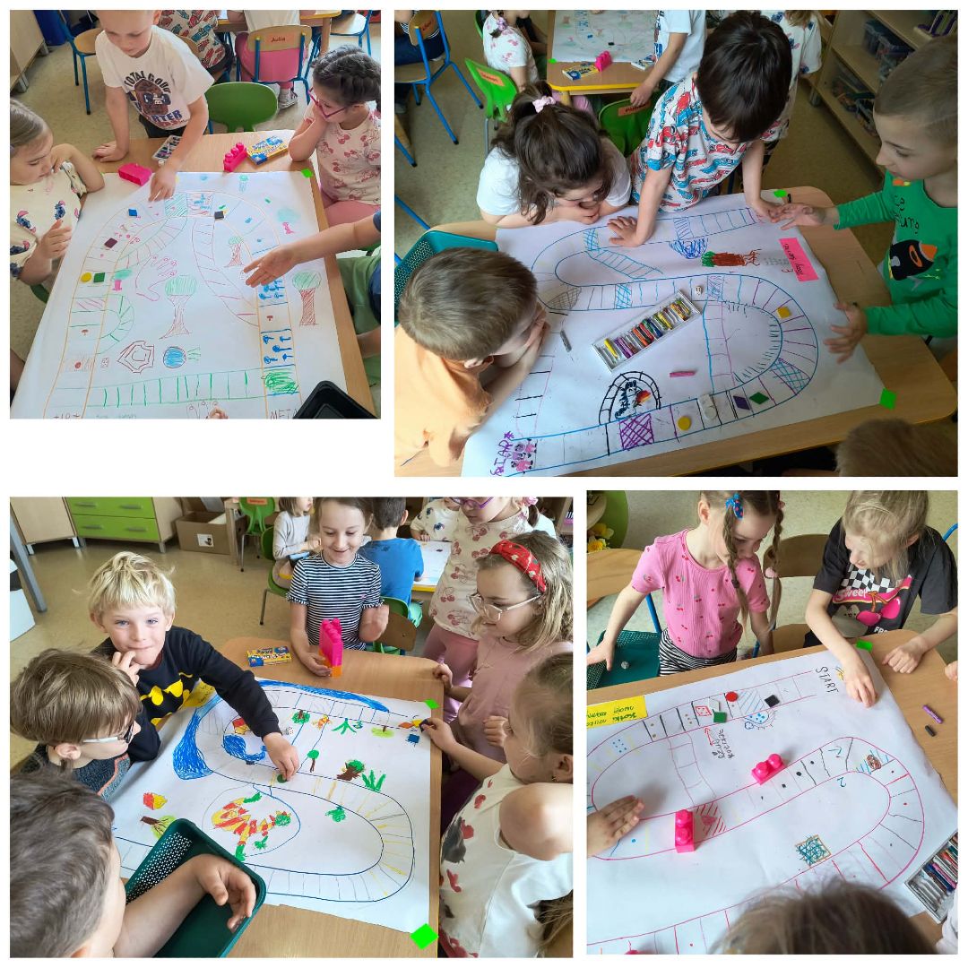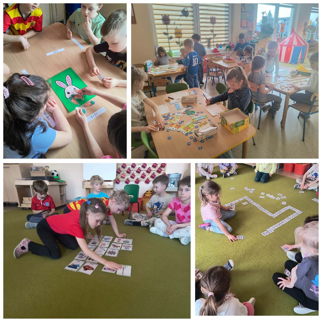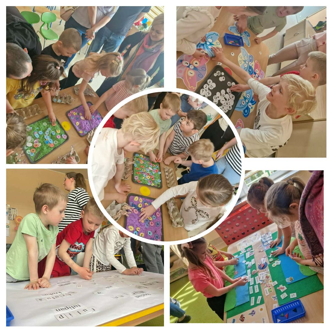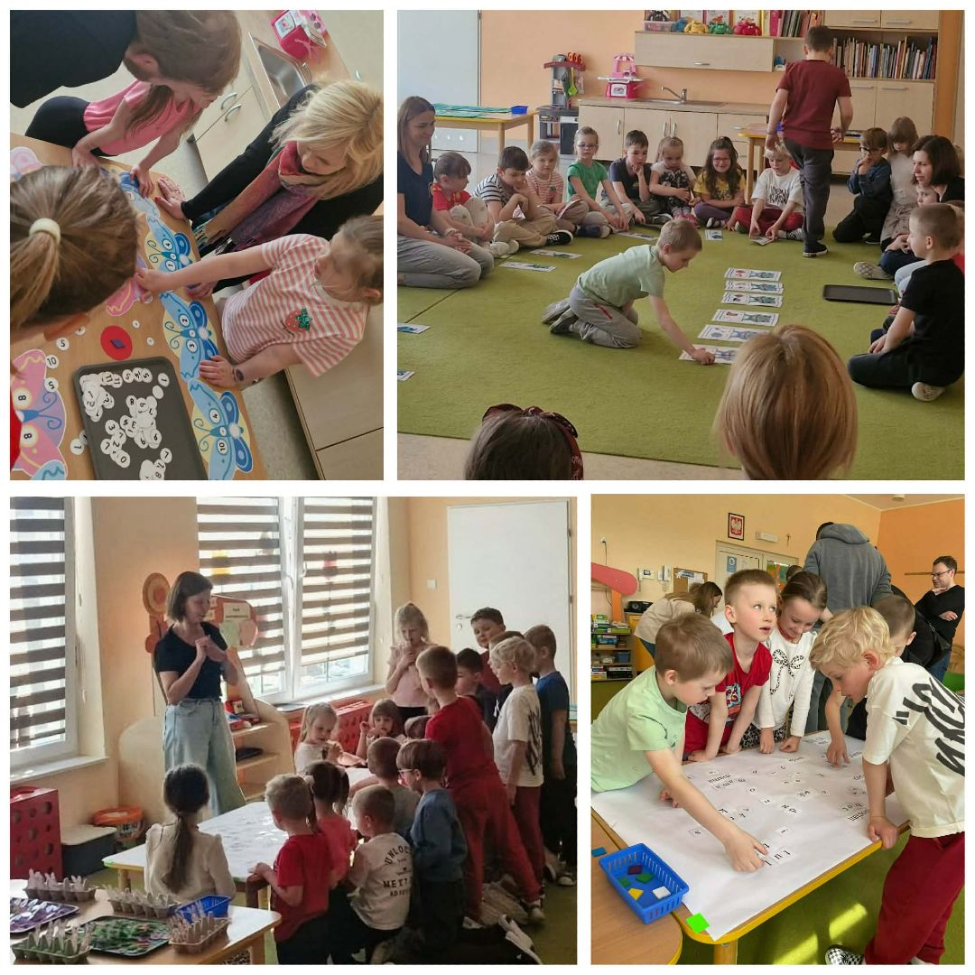 Dzieci ćwiczyły rozpoznawanie liter, wyszukiwanie rymów, układanie wyrazów z liter, wyróżnianie głosek w słowach. Podczas zabaw matematycznych rozwiązywały proste działania w zakresie 10 (lub wyższym, zgodnie z możliwościami), a także tworzyły własne gry planszowe według metody E. Gruszczyk-Kolczyńskiej.