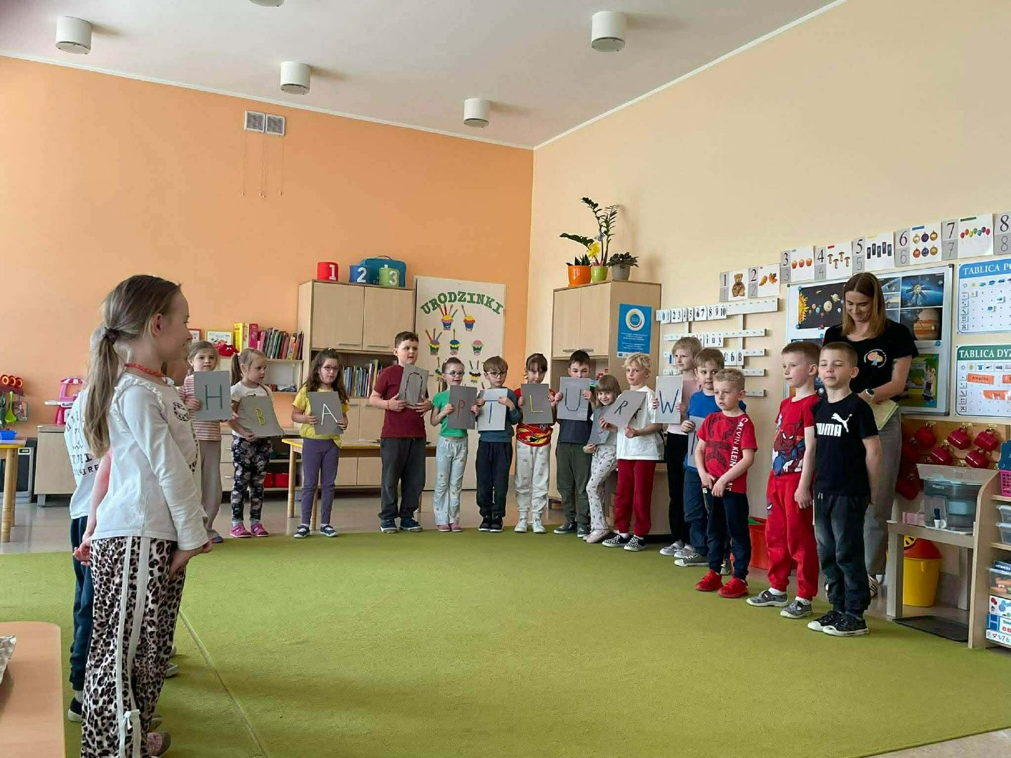 Ważnym wydarzeniem były zajęcia otwarte z udziałem rodziców, podczas których dzieci zaprezentowały swoje umiejętności, m.in. inscenizację do wiersza „Abecadło” J. Tuwima oraz uczestniczyły w zadaniach zespołowych kształtując umiejętności współpracy, komunikację oraz gotowość do nauki czytania i pisania.