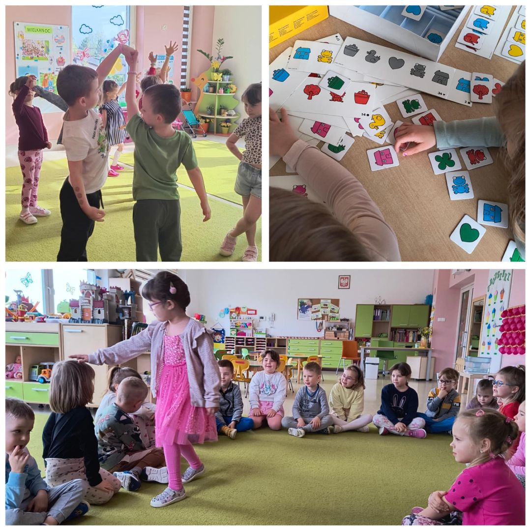 Wszystkim zabawom matematycznym towarzyszy zawsze ruch i muzyka. Utrwalaliśmy, kierunki, strony ciała,  zapamiętywanie prostych sekwencji ruchowych.