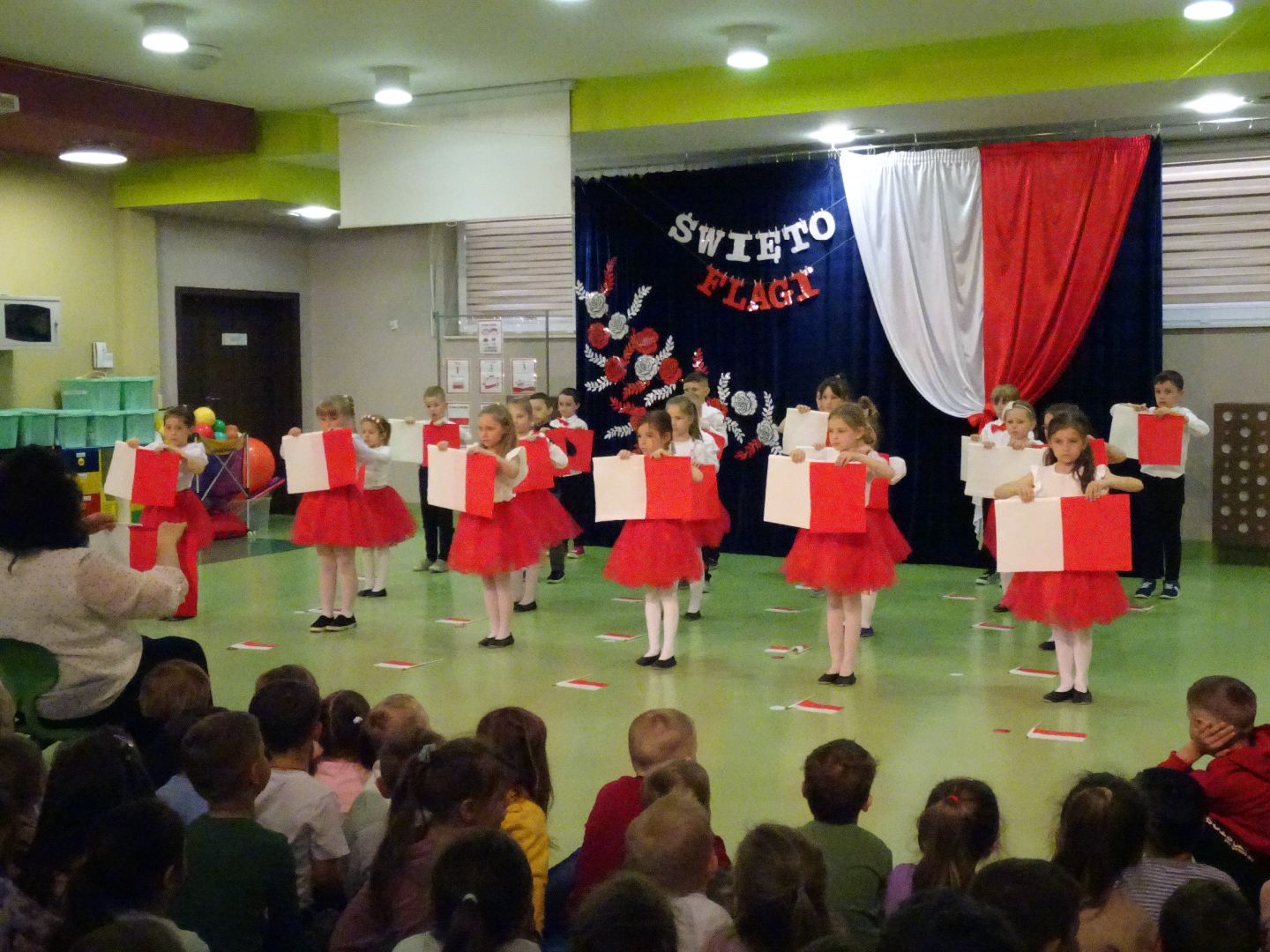 2 Maja przypada „Dzień Flagi”. Nasze przedszkole również włączyło się w obchody tego niezwykle ważnego i wielkiego święta. Z tej okazji starszaki z grupy VII „Kokosy” chcąc oddać hołd polskim barwom narodowym wystąpiły we wzruszającym montażu słowno – muzycznym pt. „Biało – Czerwona”. Była to wspaniała okazja do przekazania naszym wychowankom tak ważnych wartości patriotycznych, jak: miłość do Ojczyzny, poszanowanie symboli narodowych oraz pielęgnowanie polskich świąt i tradycji. Wspólne celebrowanie „Święta Flagi” z pewnością było niezapomnianą lekcją patriotyzmu, a jednocześnie znakomitą okazją do przypomnienia wszystkim dzieciom, że są Polakami, a ich ukochaną Ojczyzną jest POLSKA…!
