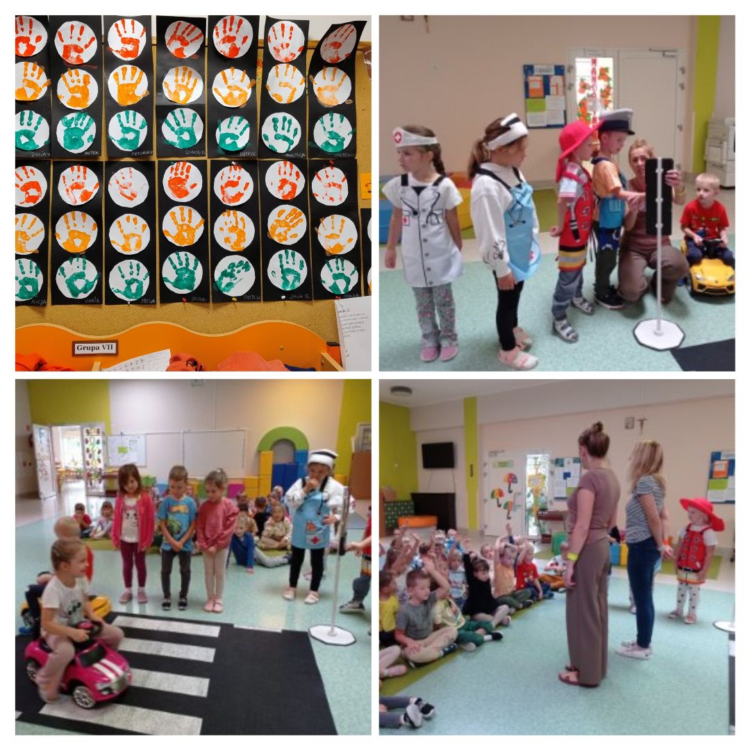 - uczyliśmy się zasad bezpiecznego poruszania się po drodze w czasie zabaw dramowych z grupą V ,,Poziomki'' z wykorzystaniem miasteczka ruchu drogowego (16.09.2025),