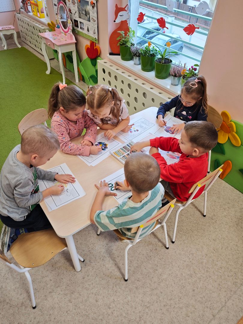W pierwszej połowie listopada realizowaliśmy treści programowe wspierające rozwój dzieci w obszarach społecznych, językowych i poznawczych: „Jak przekazujemy informacje?” oraz „Kocham Moją Ojczyznę”. Czas ten obfitował również w niezwykłe wydarzenia: „ Bal Postaci z bajek” wspólny z gr. III „Limonki”, kiedy to dzieci przeniosły się w świat ulubionych bohaterów literackich; były tańce i zabawy muzyczne, które dostarczyły przedszkolakom wiele radości, a także zachęciły do sięgania po książki z ulubionymi bohaterami. Byliśmy na wycieczce w Narodowym Banku Polskim, gdzie dzieci poznały historię polskiego pieniądza i zobaczyły pamiątkowe monety i banknoty. Wraz z całą społecznością przedszkolną Arbuzy wzięły udział w akcji „Szkoła do Hymnu”. O godz. 11.11 (w piątek 7 listopada) wszyscy wspólnie i uroczyście odśpiewali „Mazurka Dąbrowskiego”, pokazując swoją postawą szacunek dla symboli narodowych oraz polskiej historii. W kolejnym tygodniu wzięliśmy udział w uroczystości przedszkolnej „Patriotyczne śpiewanie”. Wydarzenie to wzbudziło u przedszkolaków poczucie dumy i radości z bycia częścią naszej Ojczyzny.