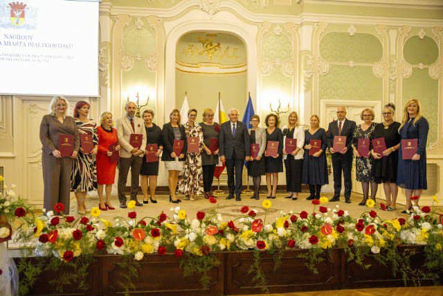 Z dumą informujemy, że Prezydent Miasta Białegostoku Pan Tadeusz Truskolaski przyznał Pani Dyrektor Annie Barbarze Stopczyk i Nauczycielowi Pani Iwonie Romanowskiej Nagrodę z okazji Dnia Edukacji Narodowej za szczególne osiągnięcia w pracy dydaktycznej i wychowawczej, za zaangażowanie w dzieło nauczania i wychowania młodego pokolenia.