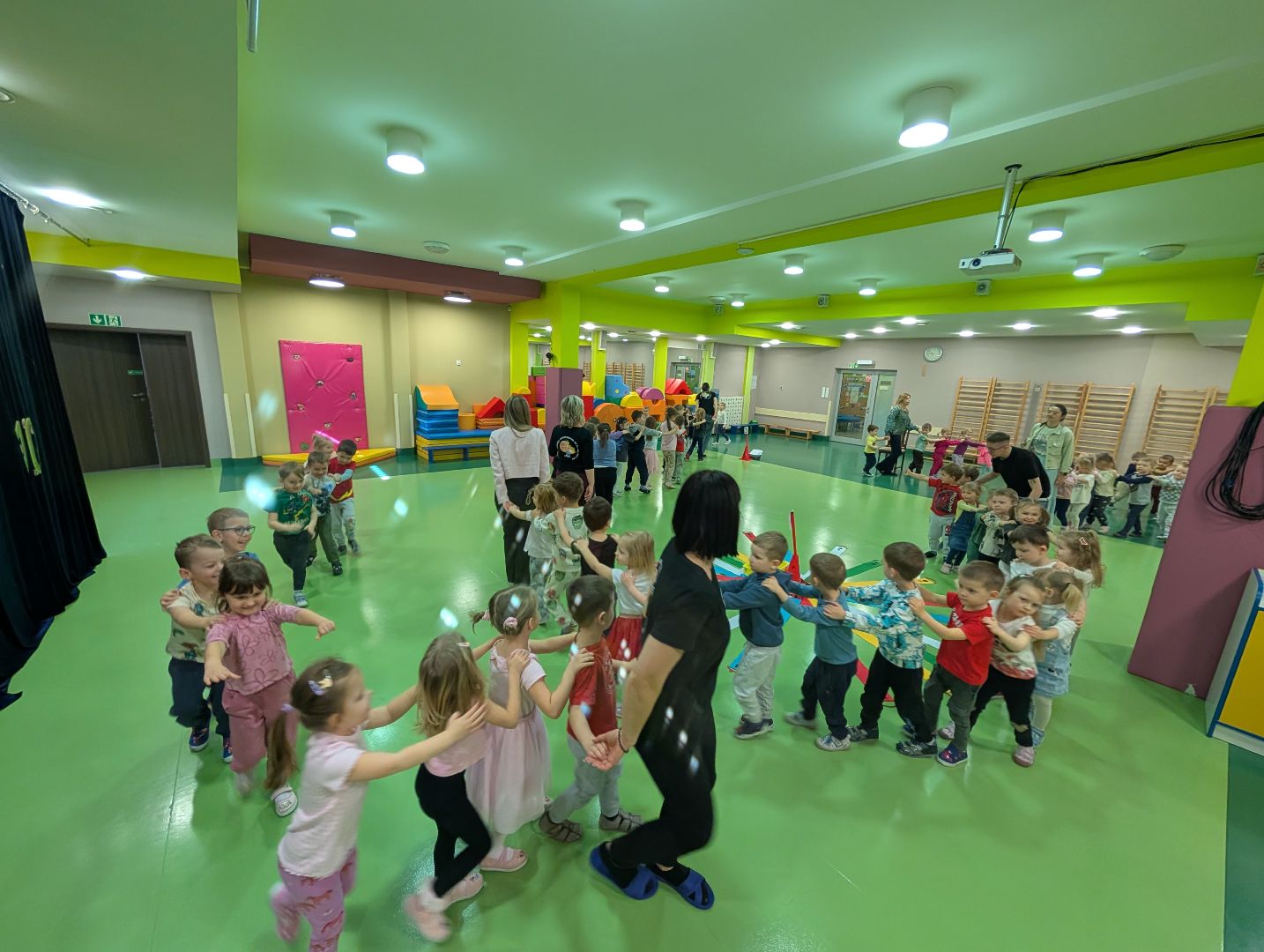 Z okazji Dnia Matematyki w naszym przedszkolu dzieci z grup młodszych - I, II, III, VIII wzięły udział w wyjątkowym święcie pełnym zabawy i nauki. W sali zostały przygotowane specjalne stacje zadaniowe, do których dzieci przechodziły kolejno w rytm dźwięków lokomotywy, co wprowadzało radosną i dynamiczną atmosferę. Na pierwszej stacji dzieci wykonywały zadanie z wiatrakiem matematycznym. Do szarf należało dopasować cyfry, figury geometryczne i kształty. Dużo radości sprawiło również układanie obrazków z drewnianych patyczków, gdzie przedszkolaki tworzyły różne konstrukcje i kształty. Na następnej stacji dzieci odszukiwały figury geometryczne, z których zbudowany był obrazek, zaznaczając je przy pomocy klamerek. Ostatnim zadaniem było układanie obrazków z figur geometrycznych według wzoru. Każda z grup z dużym zaangażowaniem wykonywała zadania i świetnie radziła sobie z matematycznymi wyzwaniami. Na zakończenie wszystkie grupy otrzymały dyplomy i nagrody, które wręczyła Pani Dyrektor. Dzień Matematyki był doskonałą okazją do nauki poprzez zabawę, rozwijania logicznego myślenia oraz utrwalania znajomości figur, kształtów i cyfr.
