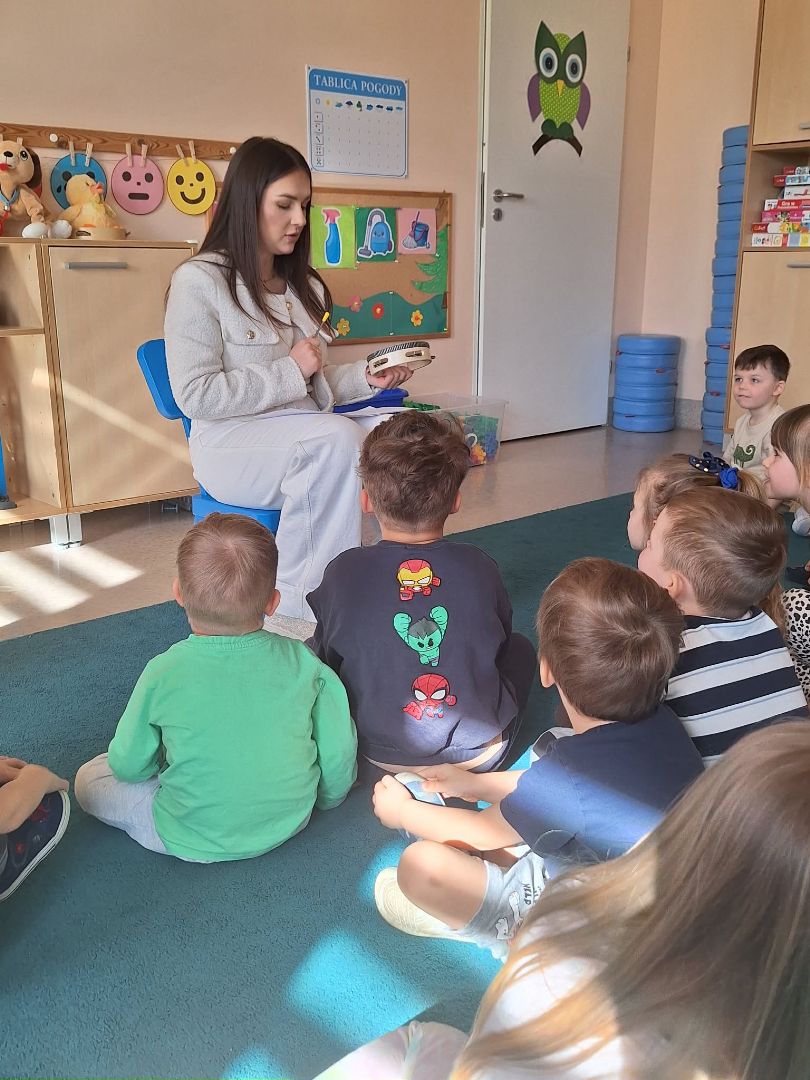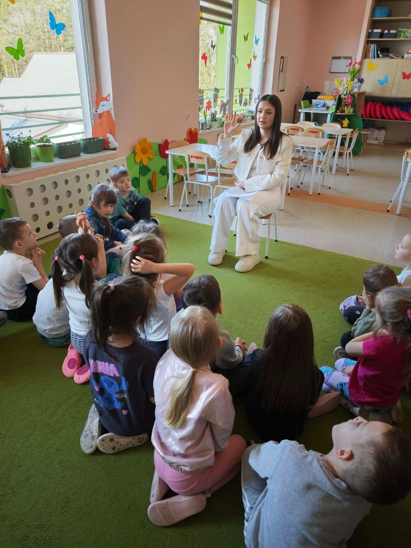 10.03.2026 r. w ,,Brzoskwiniowym Raju'' obchodziliśmy Dzień Logopedy. Z tej okazji Pani Natalia, logopeda w naszym przedszkolu, odwiedziła wszystkie grupy, aby opowiedzieć dzieciom o swojej pracy. Podczas spotkań przedstawiła zawód logopedy oraz wyjaśniła, na czym polega jego rola i w jaki sposób pomaga dzieciom i dorosłym w prawidłowym mówieniu. Przedszkolaki dowiedziały się, dlaczego warto ćwiczyć buzię, język i oddech oraz jak ważna jest wyraźna wymowa. Najwięcej radości sprawiły dzieciom wspólne zabawy logopedyczne. Pani Natalia przygotowała ćwiczenia w formie opowieści o misiu, dzięki czemu dzieci poprzez zabawę wykonywały różne zadania usprawniające aparat mowy. Dzieci z dużym zaangażowaniem uczestniczyły w zabawach i chętnie wykonywały wszystkie ćwiczenia. Była to ciekawa i pouczająca lekcja, dzięki której przedszkolaki mogły lepiej poznać pracę logopedy.