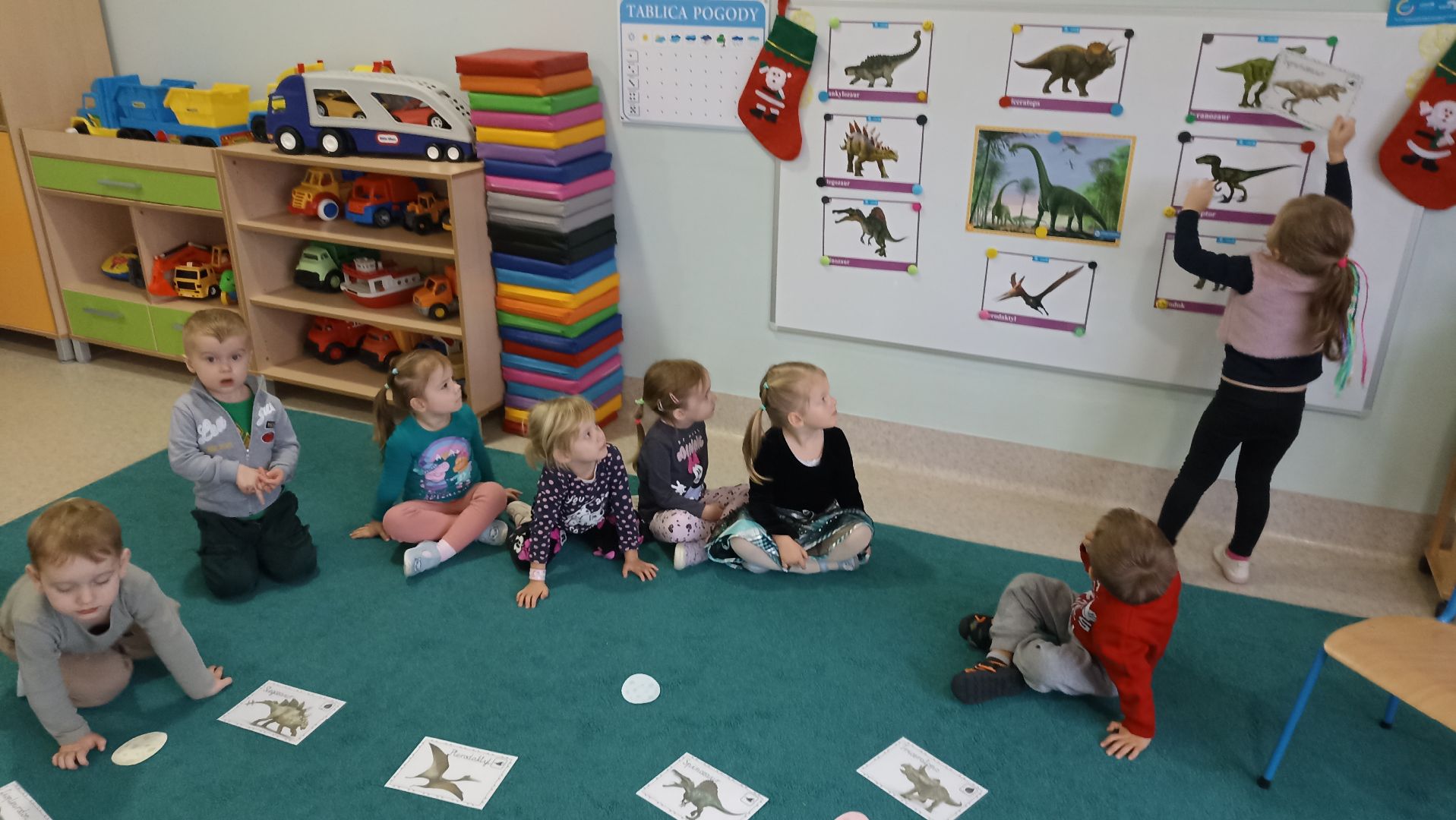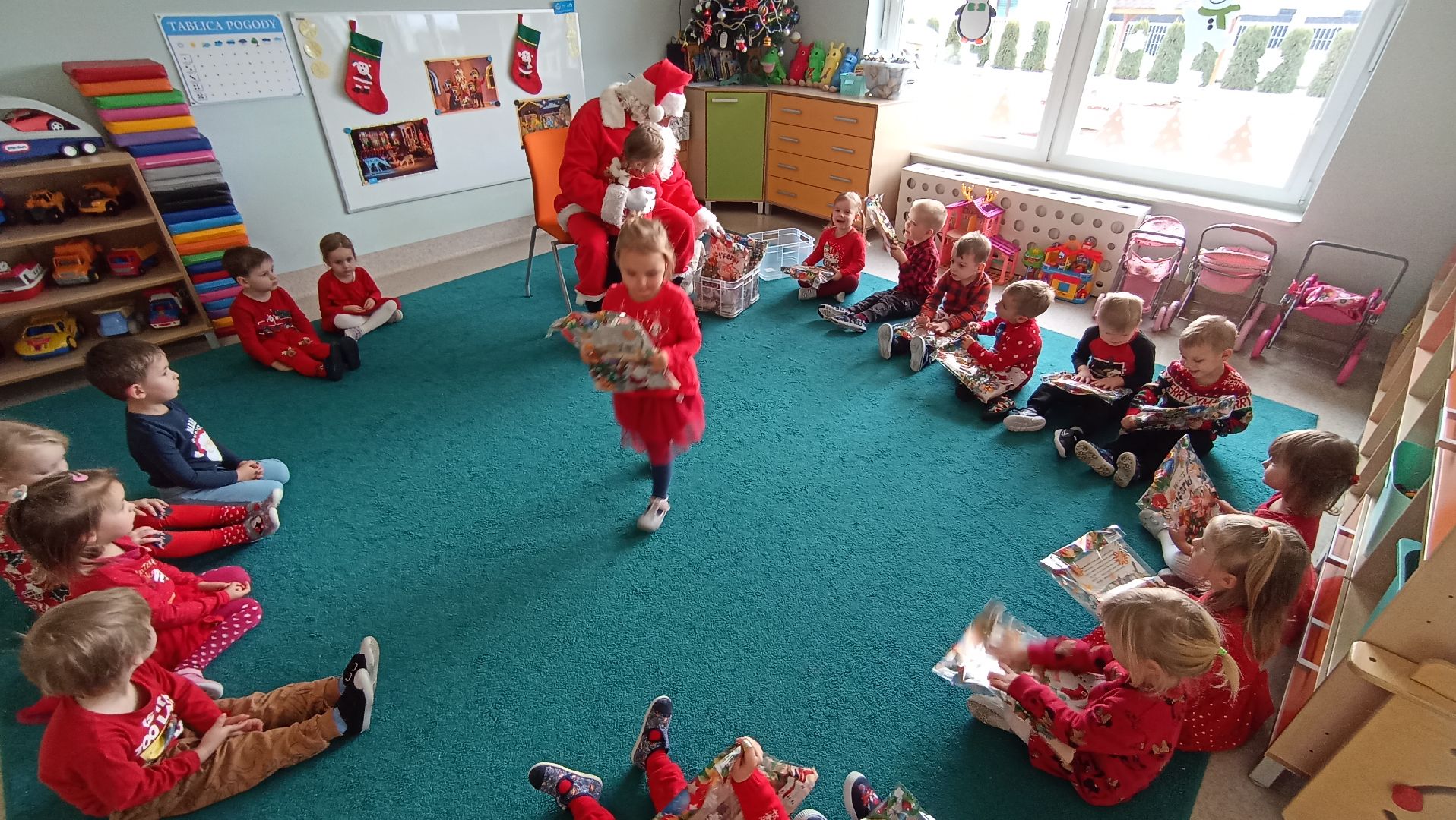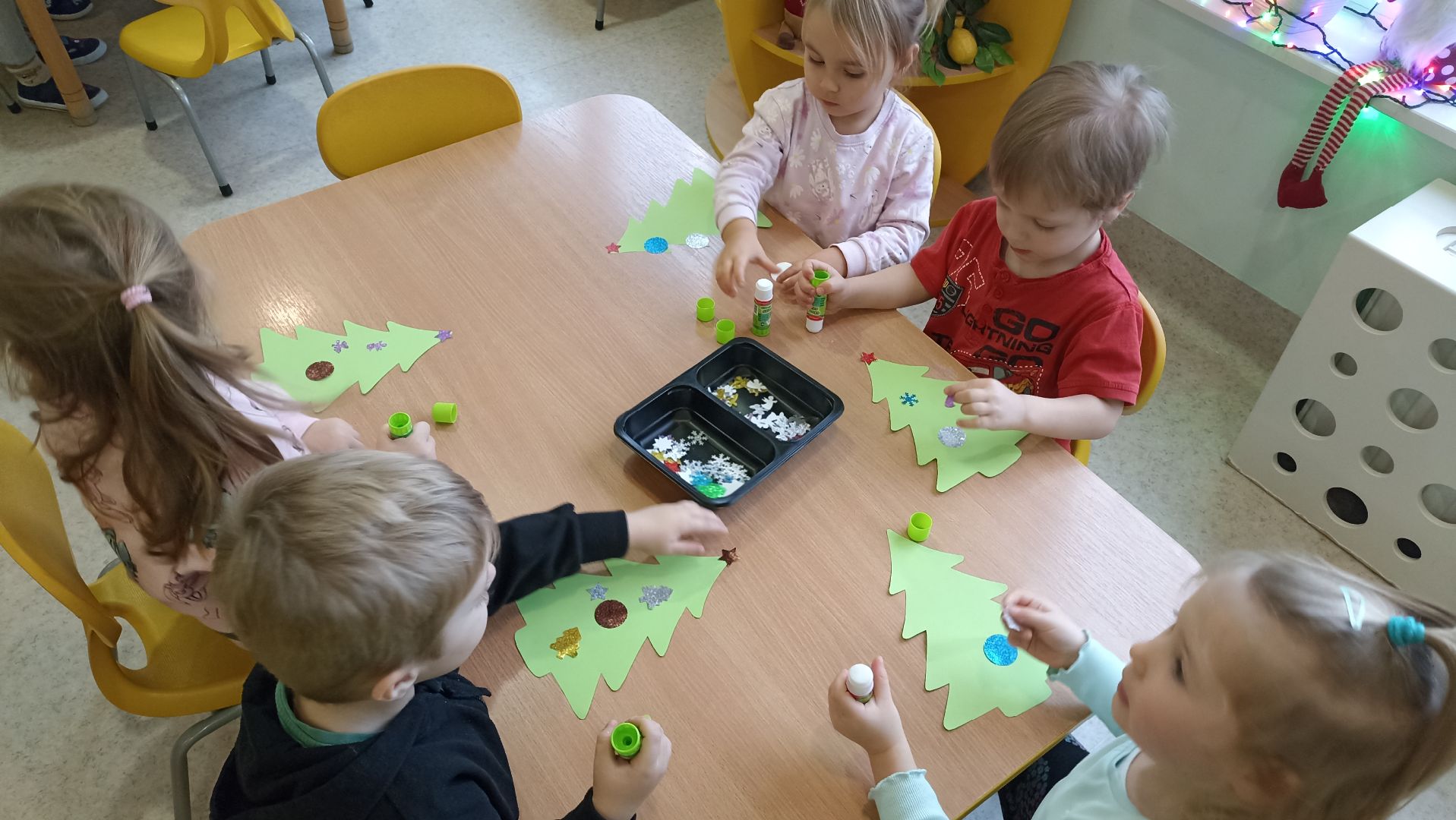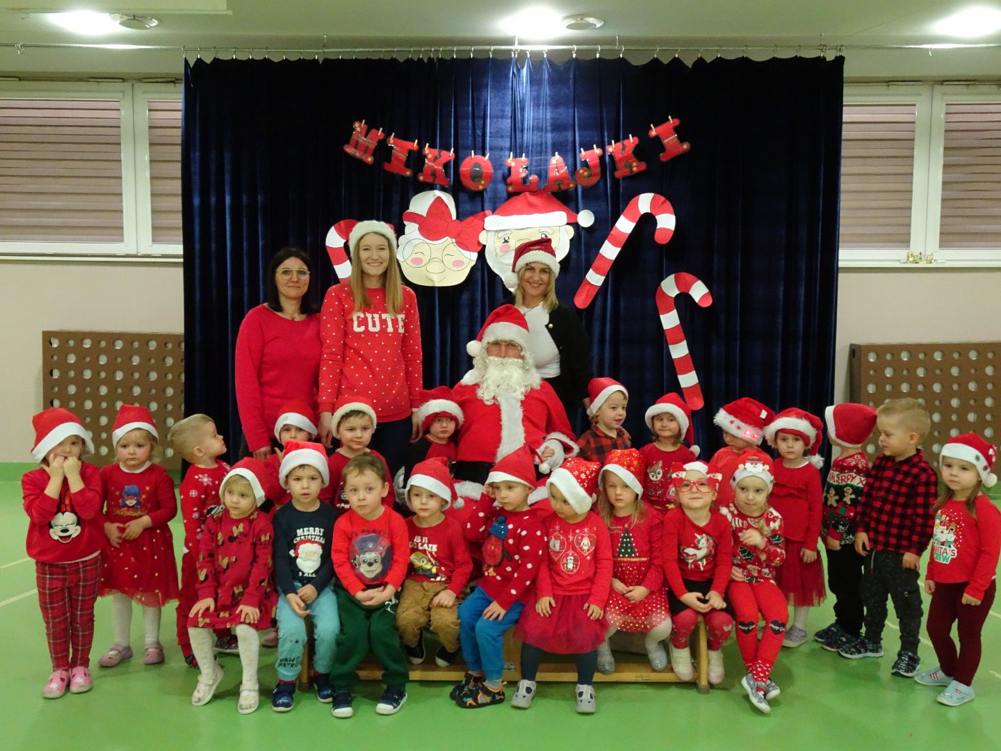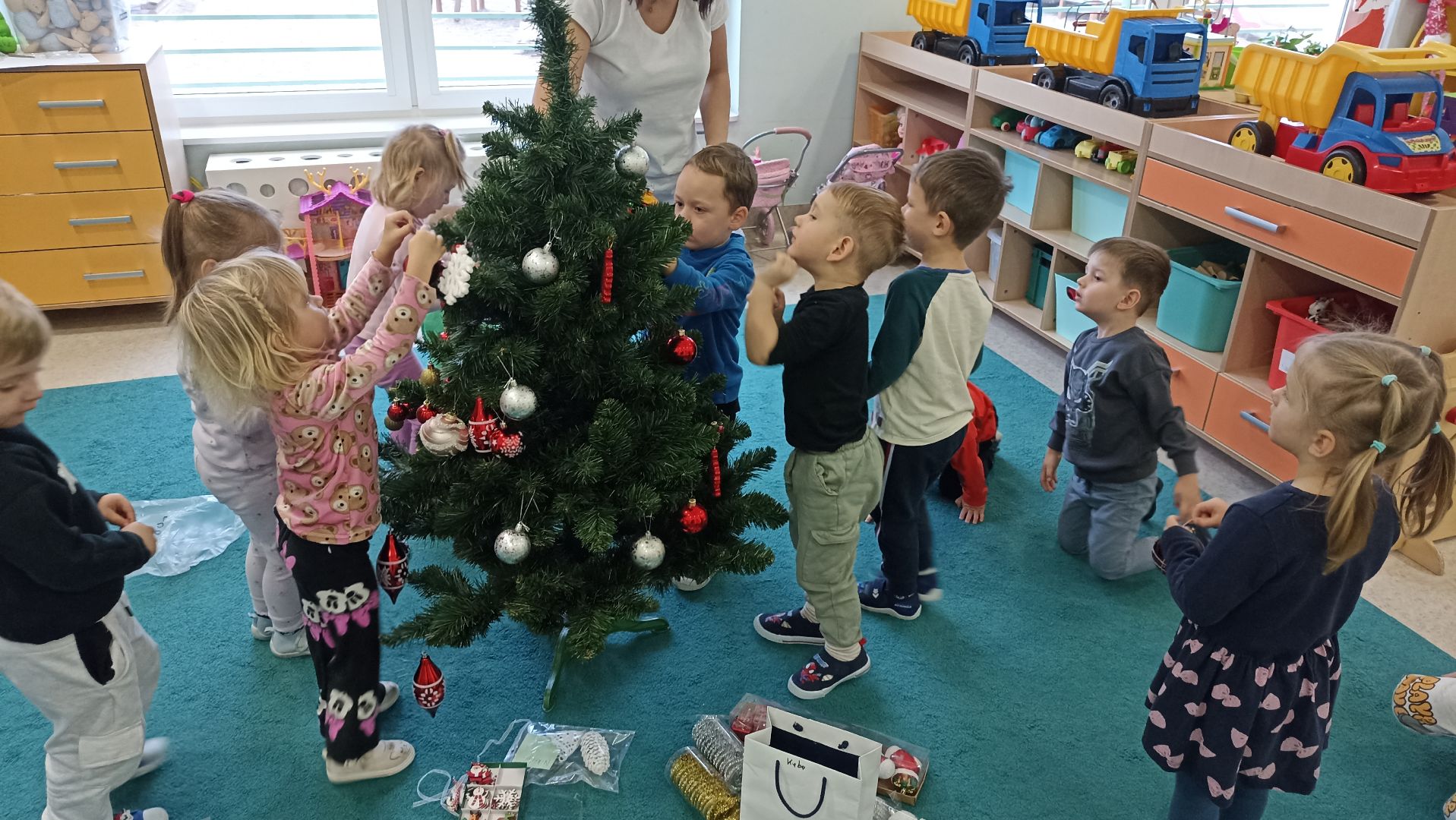 Grudzień w ,,Cytrynkach'' to miesiąc obfitujący w ciekawe wydarzenia! Na początku grudnia dzieci poszerzały swoje wiadomości o dinozaurach. Potem dekorowaliśmy naszą wspólną choinkę, która zdobi salę ,,Cytrynek''. Dzieci uczestniczyły w przedszkolnych Mikołajkach, podczas których powitaliśmy Mikołaja i dużo tańczyliśmy. Wszystkie przedszkolaki były bardzo grzeczne, więc dostały od Mikołaja prezenty. Dzieci pokazały rodzicom, czego się już nauczyły podczas zajęć otwartych ,,W świątecznym nastroju". Oglądaliśmy również wspaniałe Jasełka i uczestniczyliśmy w audycji muzycznej ,,Hej kolęda, kolęda''. Pod koniec grudnia w naszej grupie zagościł świąteczny nastrój za sprawą pierniczków, które przynosiły dzieci oraz wspólnej uroczystej Wigilii.