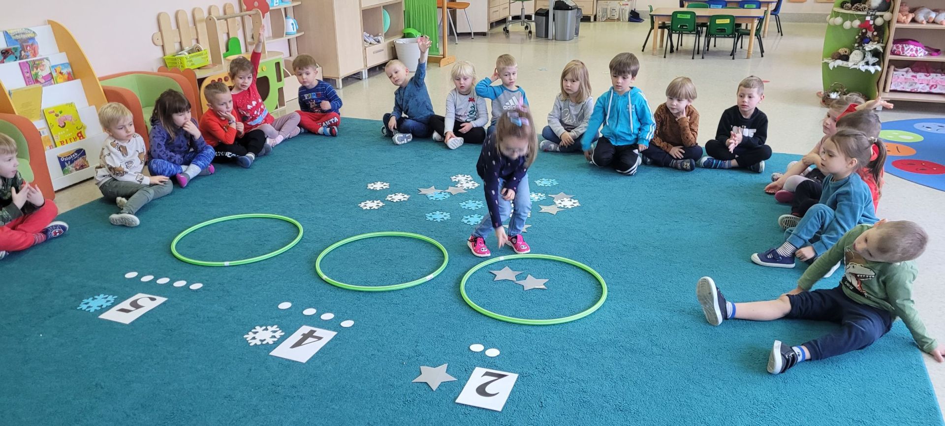 W mijającym tygodniu podczas realizacji bloku tematycznego „To już zima” „Brzoskwinki” zapoznały się z charakterystycznymi cechami pory roku, dowiedziały się w jaki sposób ludzie przygotowują się do nadejścia zimy. „Brzoskwinki” ćwiczyły pamięć podczas nauki wiersza „Biała zima”. Uczestniczyły w zabawie matematycznej „Ile płatków dzieci mają?” podczas której tworzyły zbiory równoliczne i nierównoliczne, porównywały liczebności zbiorów poprzez szacowanie „na oko”, „Brzoskwinki” doskonaliły sprawność manualną w trakcie rysowania kredkami pastelowymi zimowego krajobrazu, rozwijały wrażliwość muzyczną, doskonaliły pamięć odtwórczą poprzez naukę piosenki.