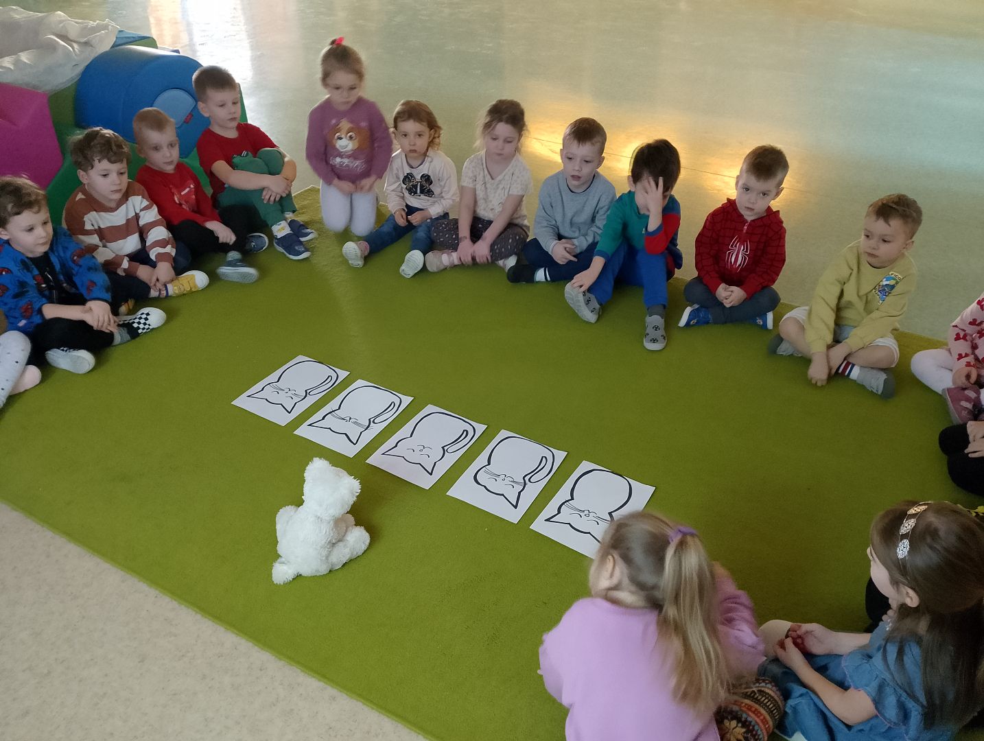 17 lutego obchodzimy Dzień Kota. Brzoskwinki też celebrowały ten dzień :) nasze zajęcia zaczęliśmy od burzy mózgów "co wiemy o kotach": dzieci swobodnie wypowiadały się o tych zwierzątkach, a wszystkie wypowiedzi były trafne i bardzo szczegółowe :) Poznaliśmy też parę ciekawostek o kotach, nazywaliśmy dzikie koty, ale też koty z bajek. Zmieniliśmy się też w myszki uciekające od kota! No jednak kot Mateusz okazał się supersprytny i złapał prawie wszystkie myszy! :) Po zabawie ruchowej odgadywaliśmy zagadki na temat kotów, wyszukiwaliśmy różnice między kotami a także określaliśmy położenie kotka względem Bruna. Na koniec mocno wyprzytulaliśmy kotka i ruszyliśmy do kotkowych kolorowanek. To był fajny kotkowy dzień :)