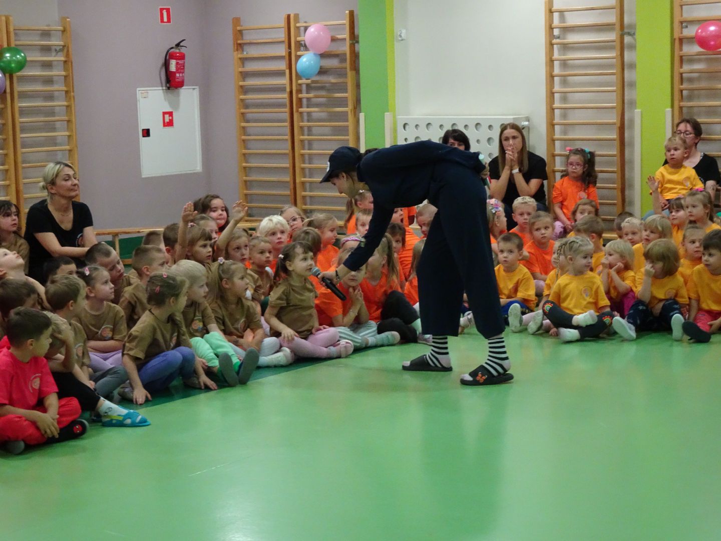 Po spektaklu przedszkolaki wzięły udział w wesołych zabawach i quizach, m.in. na temat zasad bezpieczeństwa na drodze i przechodzenia przez pasy.