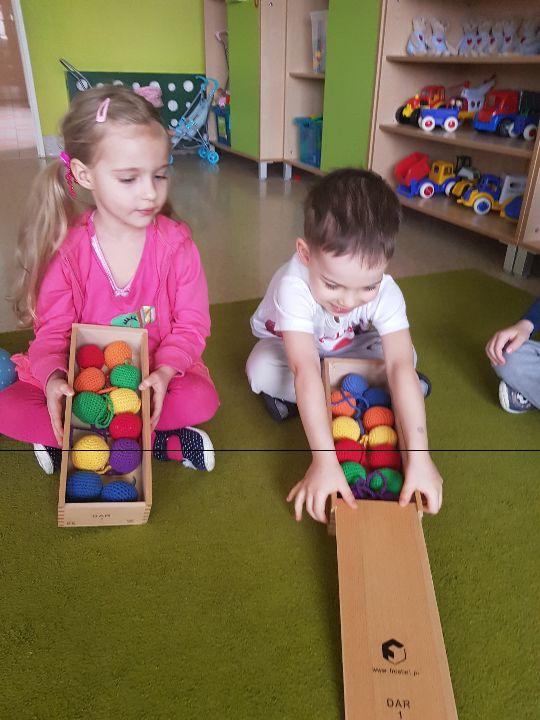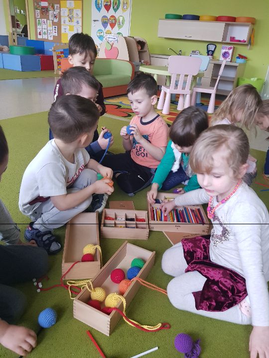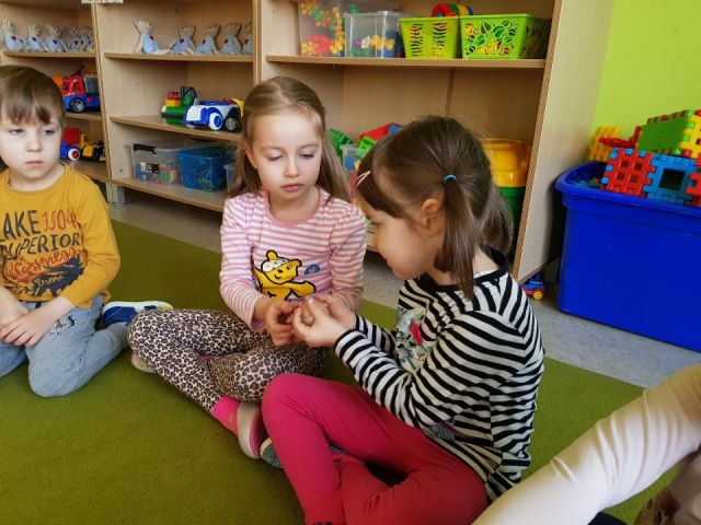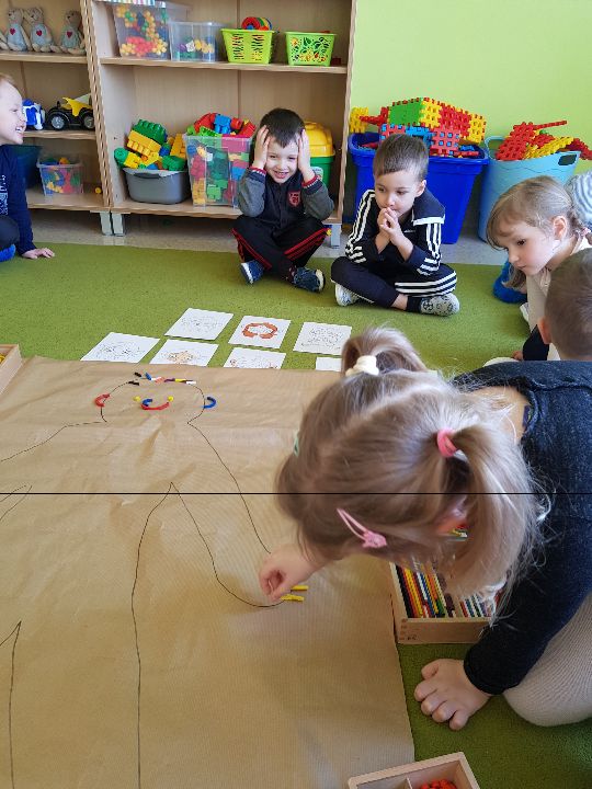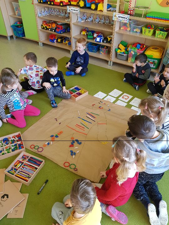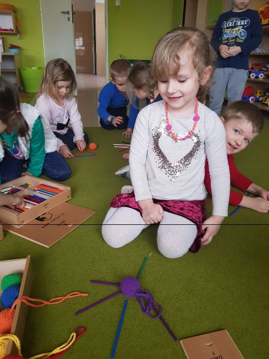 Od marca w grupie "Limonek" realizowana jest innowacja pedagogiczna pt. "W świecie Freblika - praca z dzieckiem według koncepcji F. Froebla." Według założeń praca z dziećmi podczas zajęć dydaktycznych i zabawy swobodnej oparta jest na zabawie, przy użyciu Darów Froebla. Na początku dzieci poznały Dary, żeby mogły później wykorzystywać je na zajęciach i podczas zabawy. W sali pojawiły się także nowe kącki zabawa: badawczy, twórczy, gospodarczy i darów. Zabawa według koncepcji Froebla rozwija wszystkie kompetencje kluczowe jak również umiejętności matematyczne, poznawcze, rozwija dziecięcą wyobraźnie, myślenie operacyjne, rozwija umiejętności społeczne, motorykę dużą i małą. Oto krótka fotorelacja z zajęć według założeń Froebla (także podczas realizacji zajęć z języka angielskiego pt. "My body" )
