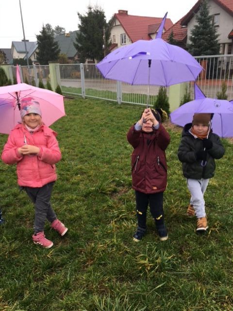 W trzecim tygodniu listopada Limonki rozmawiały o jesiennej pogodzie. Mimo, że za oknem było deszczowo i ponuro postanowiliśmy rozweselić pogodę, która nie zawsze musi być smutna i wybraliśmy się na spacer z kolorowymi parasolkami. Pochmurne popołudnia spędzaliśmy na słuchaniu bajki o „Dwunastu braciach” utrwalając przy tym nazwy miesięcy. W tygodniu dzieci poznały literę U wykorzystując do tego kasztany oraz kolorowe kamienie, wykonały prace plastyczną pt. „Zaczarowane kalosze” a także w każdym dniu śpiewaliśmy i tańczyliśmy do piosenki pt. „Jesienna cza - cza”. W piątek 20 listopada obchodziliśmy Międzynarodowy Dzień Praw Dziecka wspólnie omawialiśmy prawa dziecka oraz obejrzeliśmy film animowany pt. „Prawa dziecka”.
