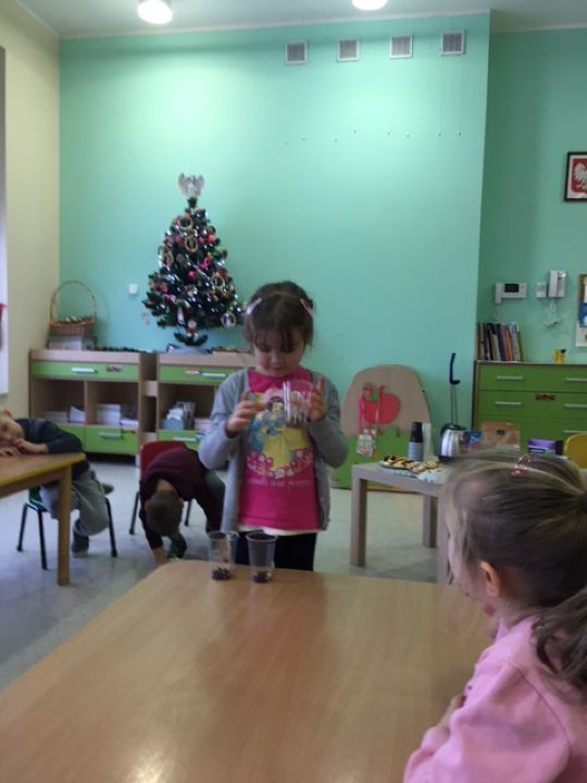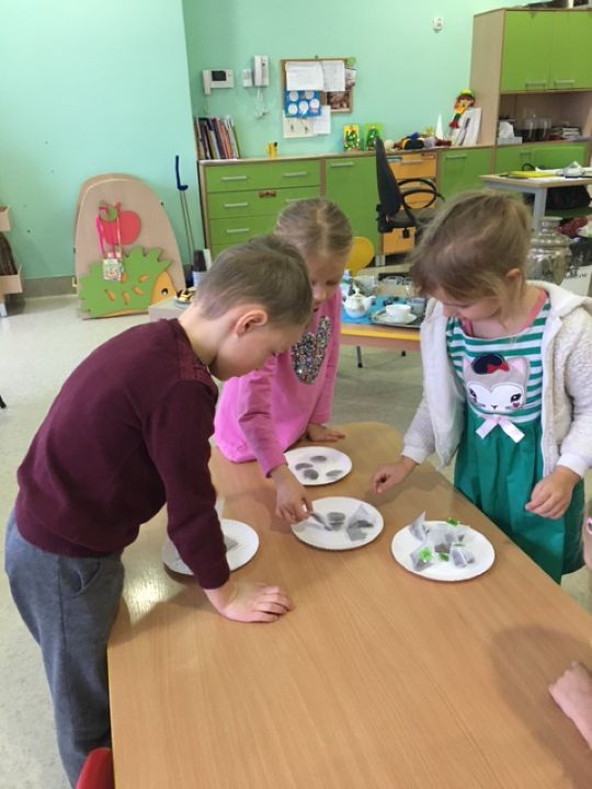 15 grudnia obchodziliśmy w naszej grupie „Dzień herbaty”. Dzieci w tym dniu poznały różne rodzaje i pochodzenie herbaty oraz podobieństwa i różnorodność kulturową związaną z tradycjami picia herbaty obowiązującymi w innych krajach. Nie zabrakło zabaw badawczych i eksperymentów np.: „W jakiej wodzie zaparzy się herbata?”, „Do czego służy zaparzacz?” a także zaparzenia herbaty i jej degustacji z pysznymi ciasteczkami. To było bardzo mile popołudnie spędzone na wspólnym piciu herbatki.