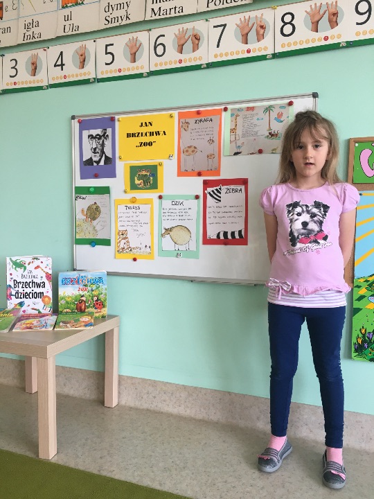 Chyba nie ma dziecka, które nie znałoby przynajmniej fragmentu któregoś z wierszy Jana Brzechwy….... w piątek w naszej grupie odbył się konkurs recytatorki pt. ZOO- Jana Brzechwy. W tygodniu związanym z tematyką zwierząt egzotycznych dzieci poznawały krótkie wierszyki Jana Brzechwy.