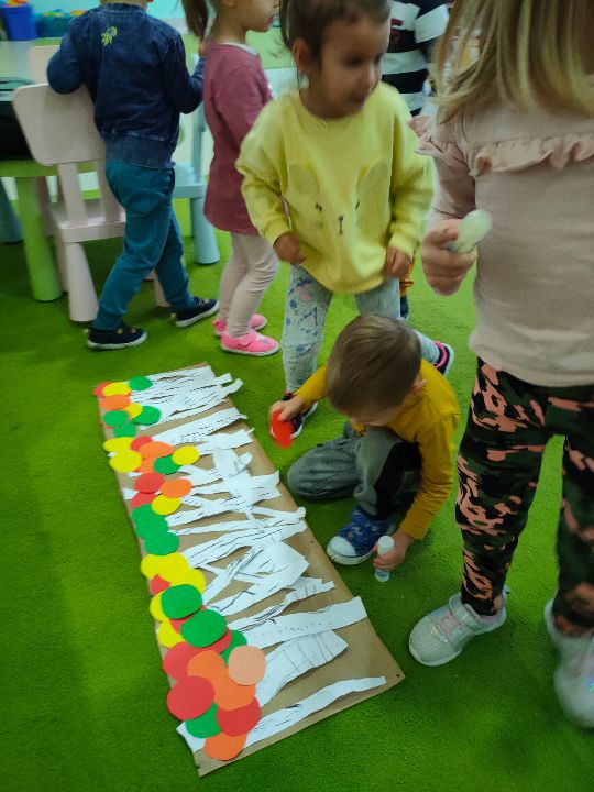 W tym tygodniu Limonki rozmawiają o jesiennym lesie, jego mieszkańcach, ich sposobach przygotowań do zimy. Jak więc mogłoby obyć się bez stworzenia pięknego, jesiennego lasu? :) Do jego wykonania wykorzystaliśmy metodę Edukacji przez Ruch Doroty Dziamskiej. Pani Dorota odkryła, że ruch, muzyka, rytm, dźwięk wpływają korzystnie na przyswajanie wiedzy. Dziecko podczas takich działań poznaje świat dzięki jednoczesnym uruchamianiu wzroku, słuchu, dotyku, a ruch aktywizuje prace mózgu i zapewnia jego prawidłowe dotlenienie.