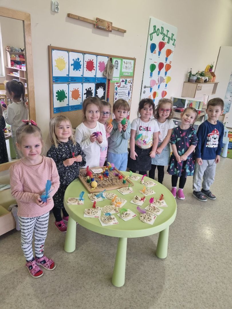 W tym tygodniu pozostając w mroźnym nastroju "Limonki" poznały niektóre z ptaków, które zostały z nami na czas zimy. Dowiedziały się jak wygląda sikorka, wróbel i gil oraz jakie są ich przysmaki. Świetnie bawiły się podczas zabaw w kącikach zabawowo-zadaniowych zapamiętując nazwy ptaków. Skomponowały również „Ptasią stołówkę” z darów Froebla oraz wykonały z masy solnej ptaszki z ich przysmakami.