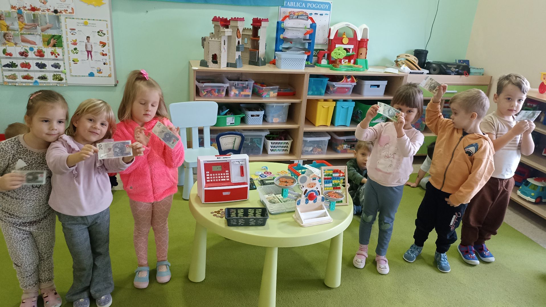 W ostatnich tygodniach w grupie ,,Limonki'' działo się naprawdę wiele! Podczas zajęć związanych z przedsiębiorczością przedszkolaki poznawały wygląd polskich monet i banknotów, dowiedziały się, do czego służą pieniądze oraz co to znaczy „oszczędzać”. Dzieci bawiły się w sklep, uczyły się liczyć monety i podejmować pierwsze „zakupowe” decyzje. Była to doskonała okazja do rozwijania logicznego myślenia i umiejętności społecznych. Wspólnie z zaprzyjaźnioną grupą „Arbuzy” świętowaliśmy Dzień Postaci z Bajek. Dzieci przyszły do przedszkola przebrane za swoich ulubionych bohaterów. Były wspólne zabawy, zagadki, tańce postaci z bajek. Spotkanie było pełne kolorów, śmiechu i kreatywności. W ramach przygotowań do Narodowego Święta Niepodległości przedszkolaki poznawały symbole narodowe, utrwalały barwy Polski oraz wspólnie uczyły się krótkich wierszyków i piosenek patriotycznych. Dzieci z dumą wykonywały biało-czerwone flagi. Zajęcia pozwoliły im lepiej zrozumieć, czym jest ojczyzna i dlaczego warto ją szanować. Poznawaliśmy również owoce i warzywa, przygotowaliśmy pracę plastyczną z talerzykiem pełnym zdrowia. Z okazji Święta Pluszowego Misia do przedszkola zawitały ukochane pluszowe przytulanki dzieci. Przedszkolaki wykonywały ,,misiowe" zadania, a nawet uczestniczyły w ,,Piżama Party''.