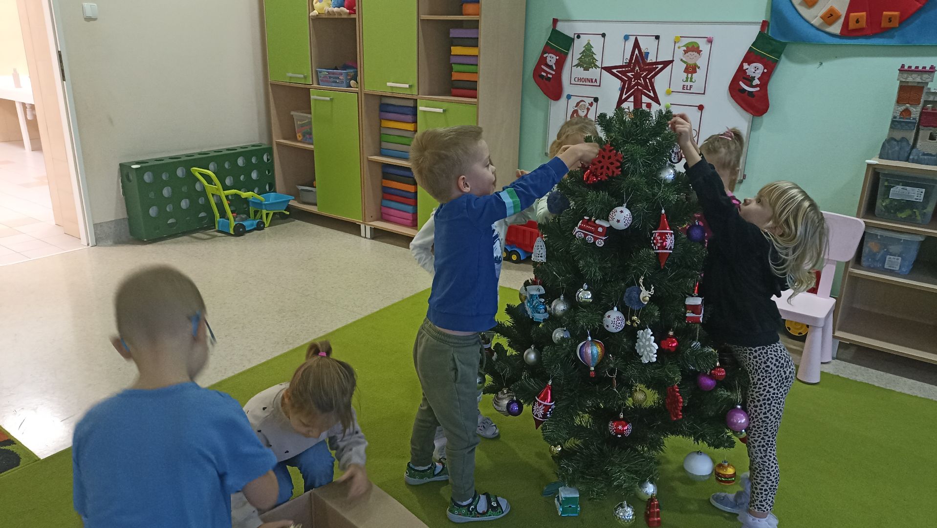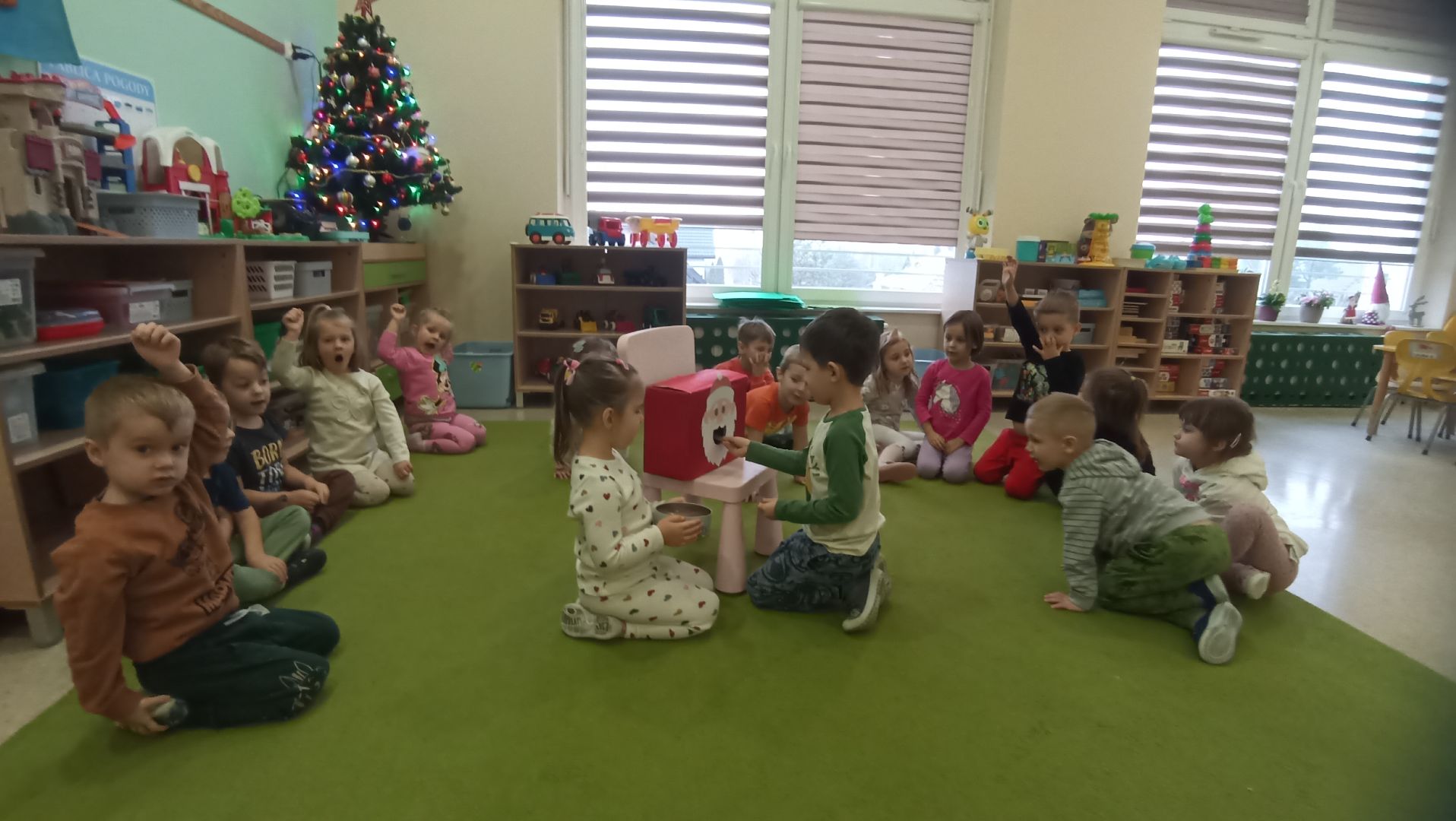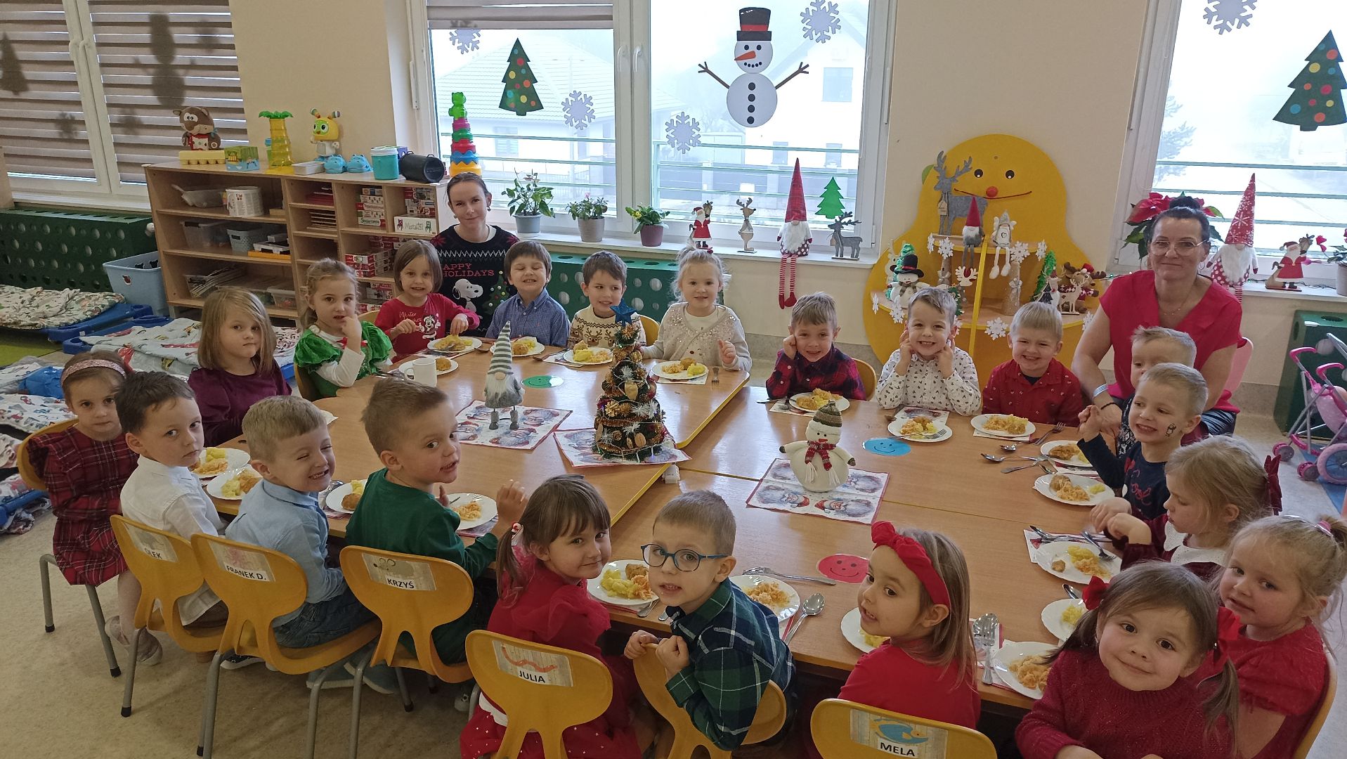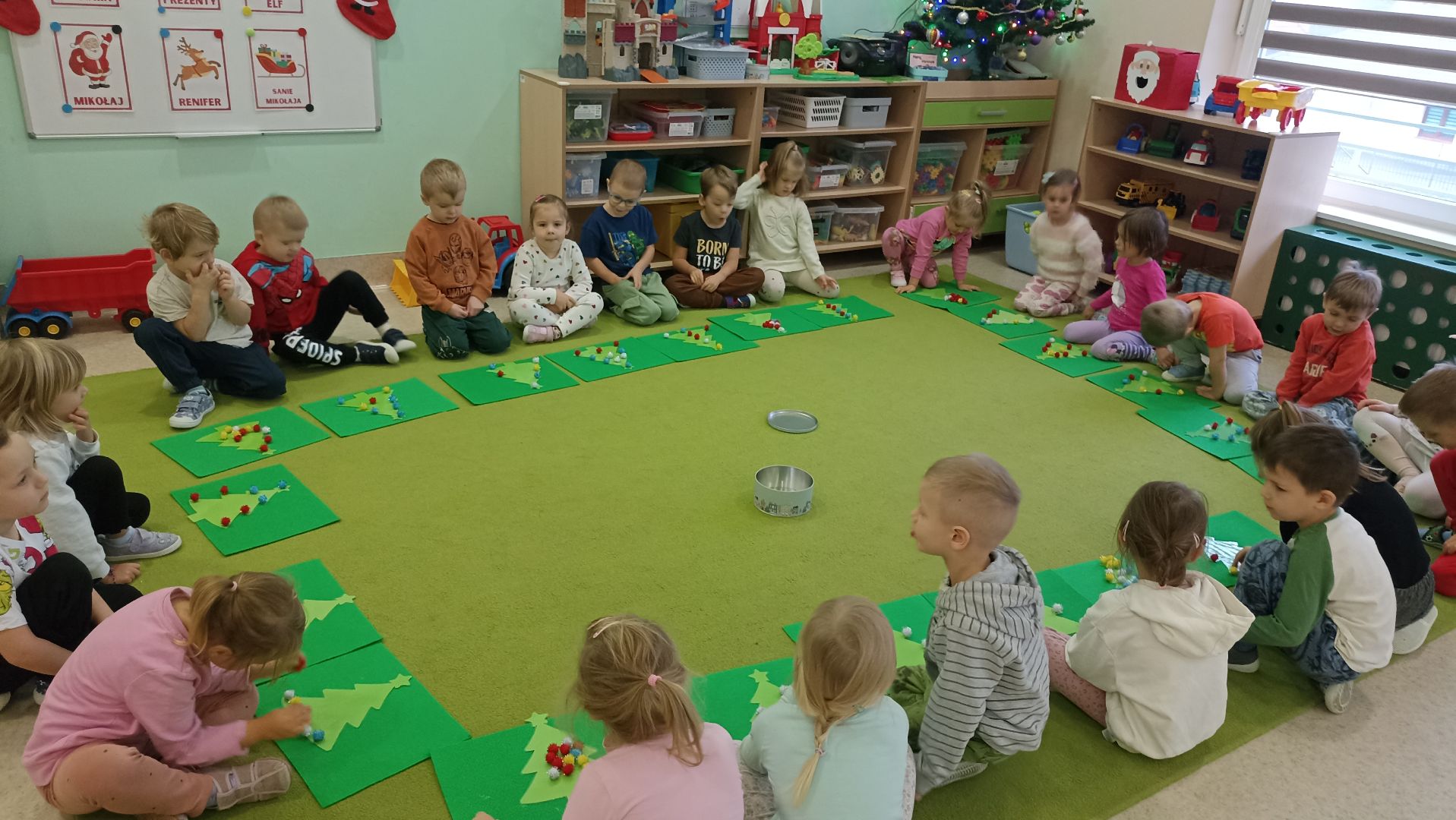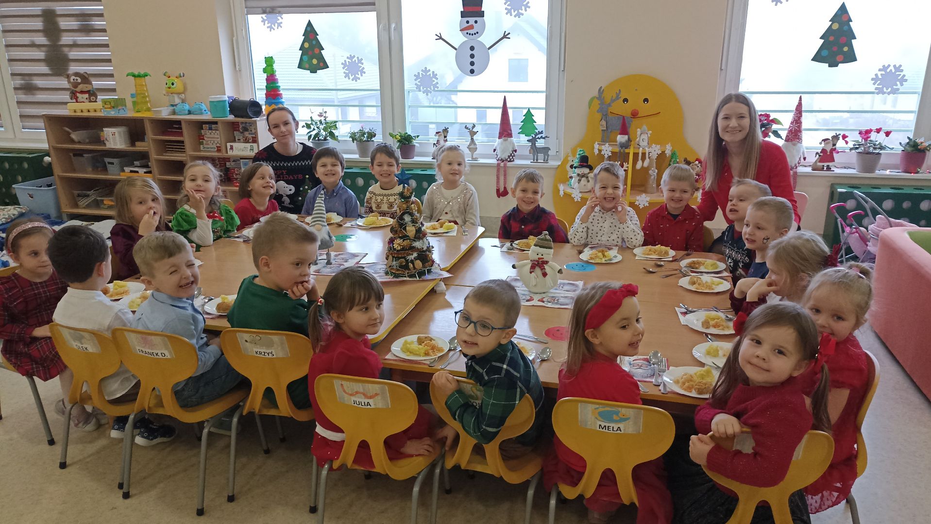 W grupie „Limonki” zapanował wyjątkowy, świąteczny nastrój. Dzieci brały udział w matematycznych grach tematycznych – liczyły pierniki na obrazkach oraz bombki–pompony na choinkach, łącząc naukę z radosną zabawą. Mieliśmy również okazję obejrzeć wspaniałe Jasełka, przygotowane przez dzieci z grupy IV i V, które wprowadziły wszystkich w bożonarodzeniową atmosferę refleksji i radości. Zaprosiliśmy rodziców na zajęcia otwarte, dzięki czemu mogli wspólnie z dziećmi uczestniczyć w przedszkolnych aktywnościach. Szczególnym momentem była wspólna Wigilia – pełna ciepła, życzliwości i uśmiechów. Razem śpiewaliśmy kolędy, dzieląc się świąteczną radością i budując piękne wspomnienia. ,,Limonki'' życzą wszystkim Wesołych Świąt!