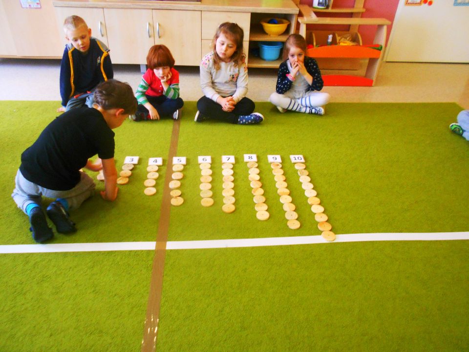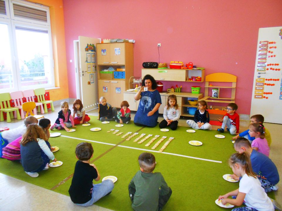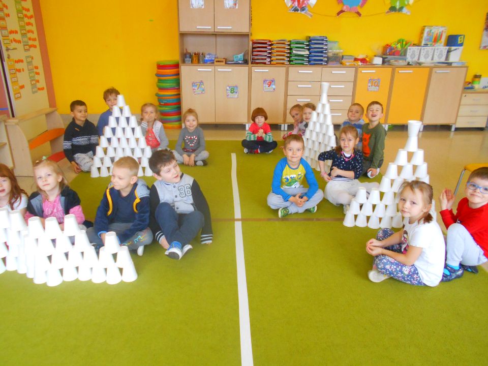 12 marca obchodzony jest „Światowy Dzień Matematyki”. Z tej okazji „Mandarynki” postanowiły policzyć wszystko co się da, gdzie się da i jak się da. Zabawy było co niemiara! Już przed śniadaniem wznosiliśmy wielkie piramidy z jak największej ilości jednorazowych kubeczków. Następnie odbyły się skoki przez krążki, zgodnie z liczbą oczek wyrzuconych na kostce. Potem przeliczaliśmy wszystkie kubki, talerze i sztućce. Nawet podczas jedzenia zupy głośno odliczaliśmy ilość zjedzonych łyżek, nie wierząc, że zupa może tak szybko zniknąć z miseczki. W dalszej części naszego „matematycznego święta” układaliśmy wspólnie z nowo zakupionymi misiami - kolorowy płotek i sprawdzaliśmy z ilu składa się patyczków. A kiedy nasze brzuszki poczuły się nieco głodne postanowiliśmy poćwiczyć dodawanie i odejmowanie kukurydzianych chrupek. Najbardziej nam się podobało - oczywiście odejmowanie, kiedy to chrupiące „flipsy” same znikały w naszej buzi!