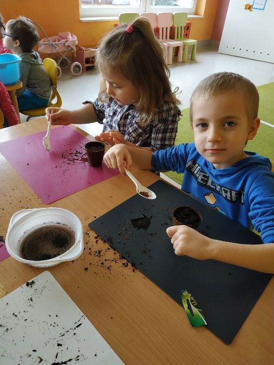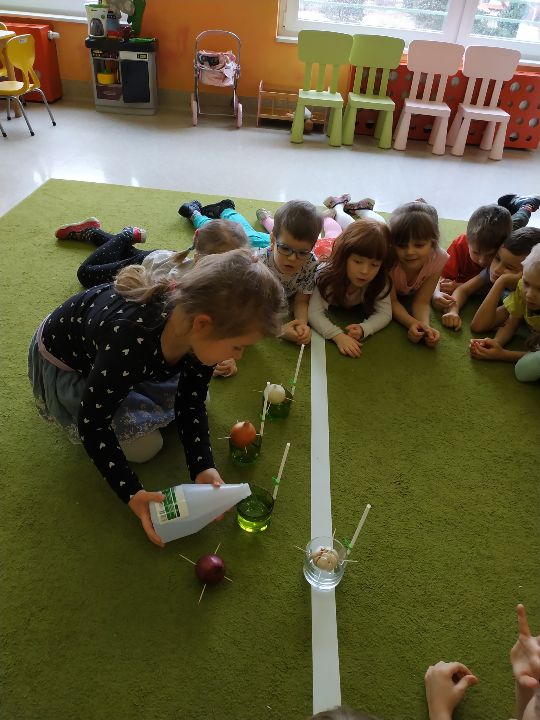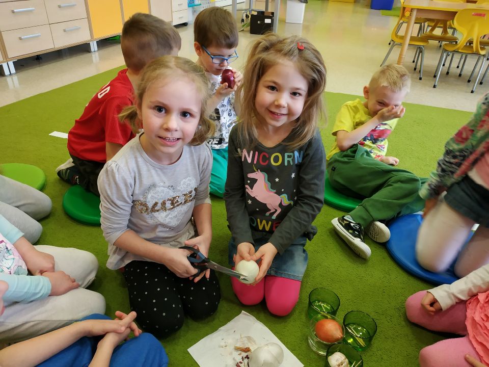 Miniony tydzień upłynął Mandarynkom w zielonych barwach ;) Nauczyliśmy się, jakie warunki należy spełnić, aby wyhodować roślinę, każdy z nas założył swoją własną hodowlę siejąc rzeżuchę, bazylię, miętę lub szczypiorek czosnkowy. Wsadziliśmy do wody różnokolorowe cebule i czosnek i bacznie obserwujemy jak wyrastają im korzenie.