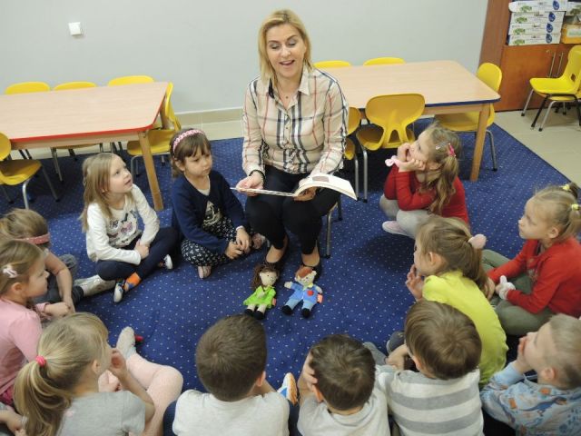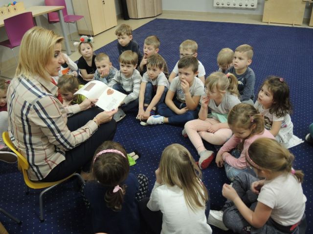 Na zakończenie bloku tematycznego o bajkach odwiedziła grupę Mandarynek Pani Dyrektor Anna Stopczyk. W przedszkolnej bibliotece przeczytała dzieciom bajkę o Jasiu i Małgosi. Przedszkolaki bardzo uważnie słuchały opowieści a następnie odpowiadały na pytania o dobrych i złych zachowaniach. Na zakończenie otrzymały kolorowanki a w sali czekał na nich słodki poczęstunek zakupiony podczas spaceru w osiedlowym sklepie. Dziękujemy bardzo i zapraszamy częściej!