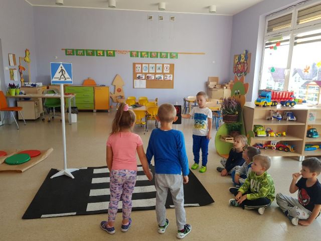 W pierwszym tygodniu poznaliśmy kodeks przedszkolaka, nasze zasady, których powinniśmy przestrzegać w przedszkolu. W drugim tygodniu września rozmawialiśmy o zasadach jakie obowiązują nas pieszych jak i kierowców na drodze. Poznaliśmy znaki drogowe, sygnalizację świetlną, wybraliśmy się na spacer na przejście dla pieszych, ćwiczyliśmy prawidłowe przechodzenie przez przejście.... to nie wszystko:) stemplowaliśmy przy pomocy Darów Froebla, budowaliśmy z darów sygnalizator świetlny, poznaliśmy figurę geometryczną - koło. Zaczęliśmy także już  ćwiczyć wycinanie nożyczkami oraz doskonaliliśmy umiejętność posługiwania się klejem. Jak widać i słychać w przedszkolu nie próżnujemy tylko codziennie miło spędzamy czas i ciągle uczymy sie czegoś nowego. Oby tak dalej:)))