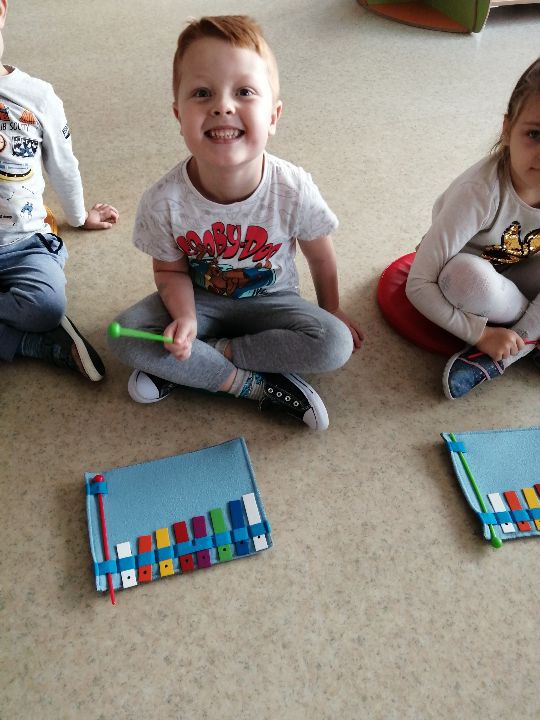 W tym tygodniu "Mandarynki" poznały gamę C-dur. Razem ją zaśpiewaliśmy oraz zagraliśmy. Dzieci zapoznały się z instrumentami perkusyjnymi. W trakcie tych zajęć "Manadrynki" uczyły się gry na dzwonkach.