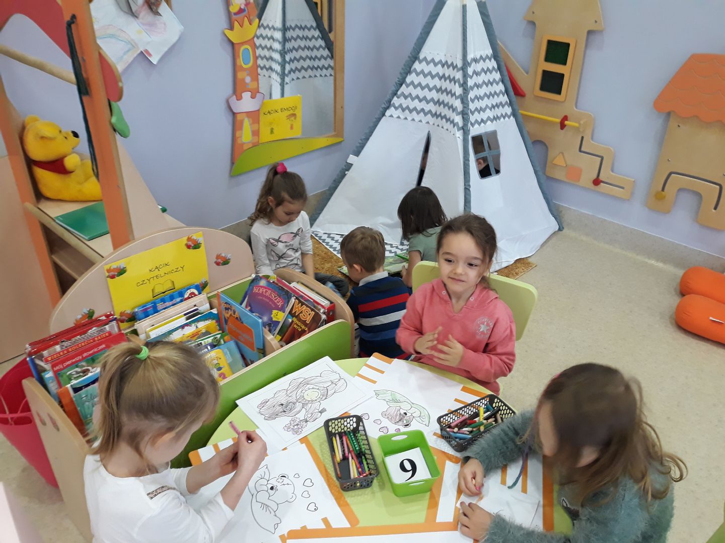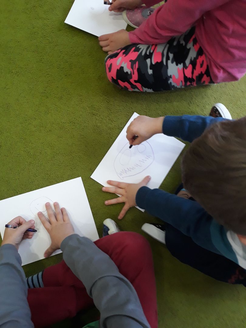Grupa IV w tym tygodniu codziennie robiła coś innego. Dzieci zapoznawały się z literą "U"i tworzyły mieszkanki ula, czyli pszczoły 3D; rozmawiały o emocjach na podstawie wiersza "Złośnik", a przy okazji stworzyliśmy w naszej grupie "Kącik emocji", w którym dzieci będą mogły wyciszyć swoją złość wytupując ją na "macie złości" lub wrzucając ją do "wiadra złości", schować się na chwilę przed światem w przyjaznym namiocie jak również okazać swój dobry nastrój wrzucając go do "wiadra radości". Uczestniczyliśmy w wycieczce do Muzeum Wojska, oraz obchodziliśmy Dzień Pluszowego Misia. Mandarynki również cieszyły się pierwszym śniegiem podczas spaceru.