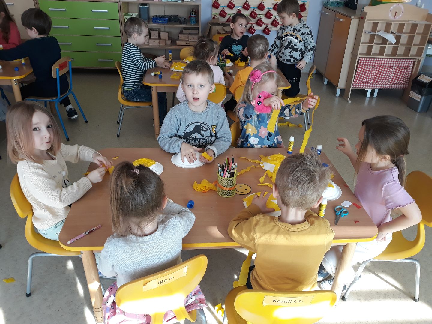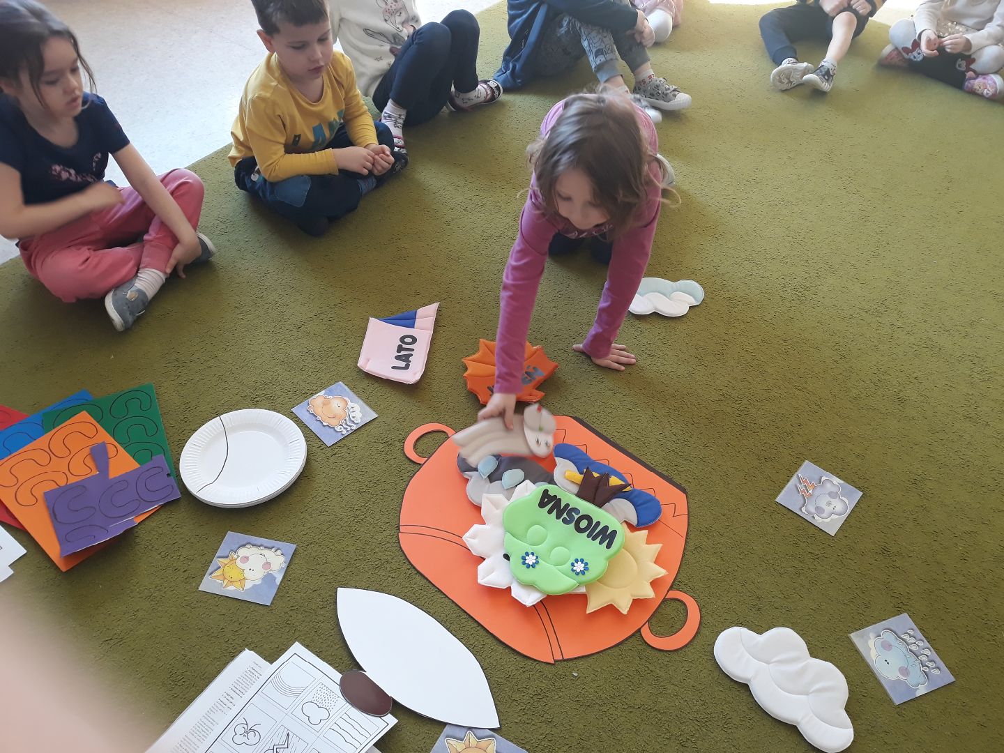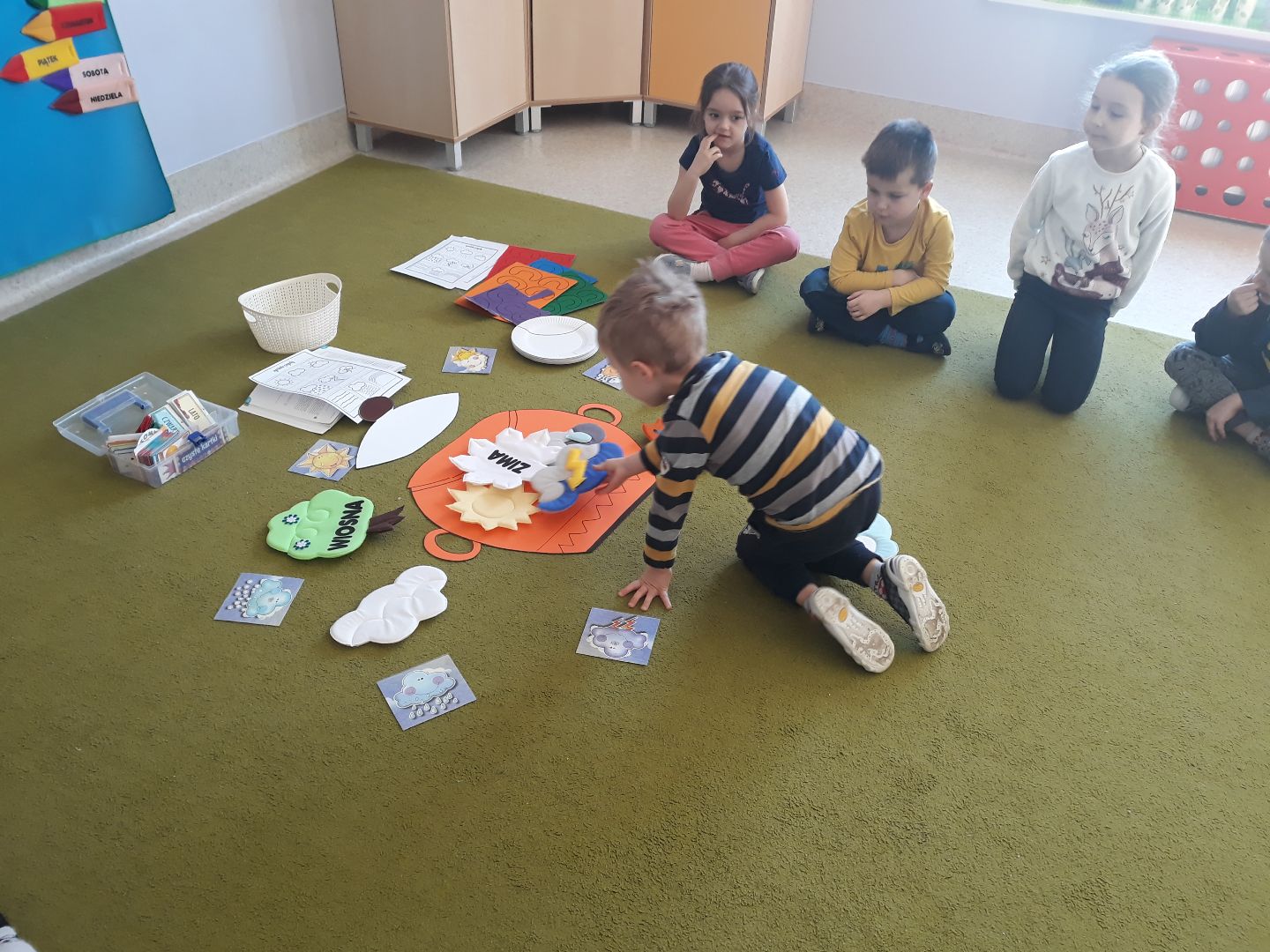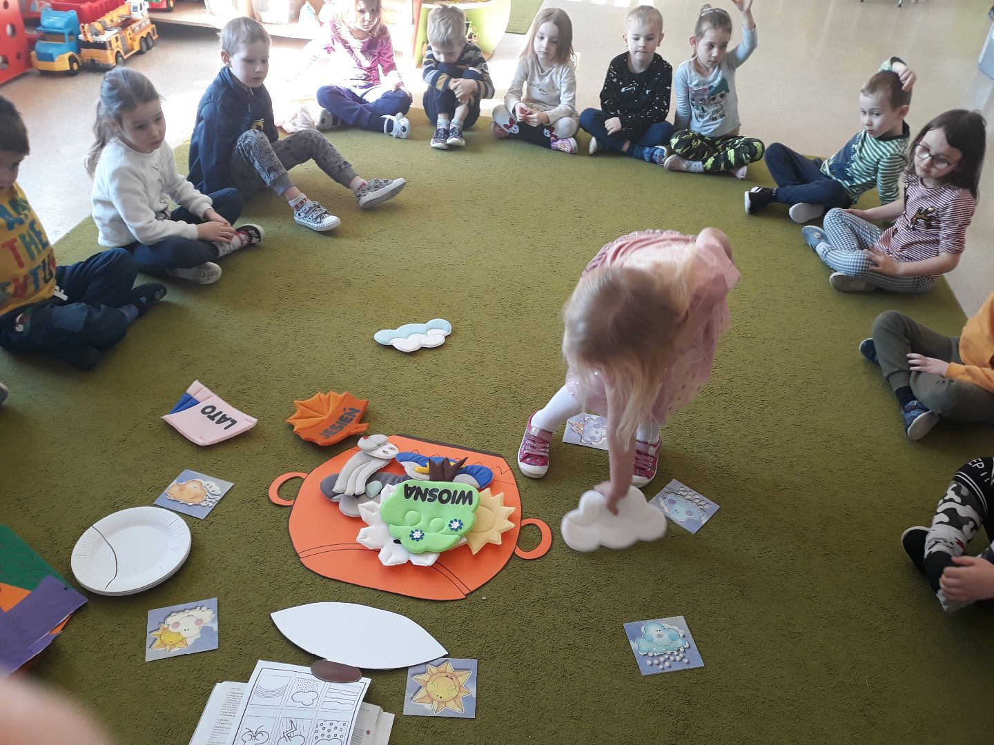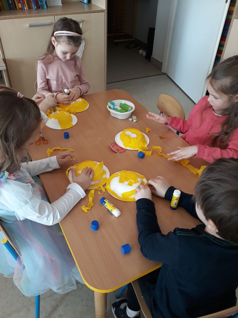 Przedszkolaki miniony tydzień spędziły w oczekiwaniu na wiosnę. Przypomniały sobie nazwy pierwszych kwiatów, które są tak silne i piękne, że jako pierwsze wydostają się spod śniegu, zapoznały się z literą "c" jak cebula oraz bawiły się z liczbą 8. Mieszały w garnku różne zjawiska atmosferyczne bo przecież "W marcu jak w garncu", wyrabiały swoją sprawność fizyczną oraz umiejętność współpracy podczas ćwiczeń gimnastycznych oraz tworzyły różne prace plastyczne rozwijając swoje zdolności manualne oraz kreatywność.