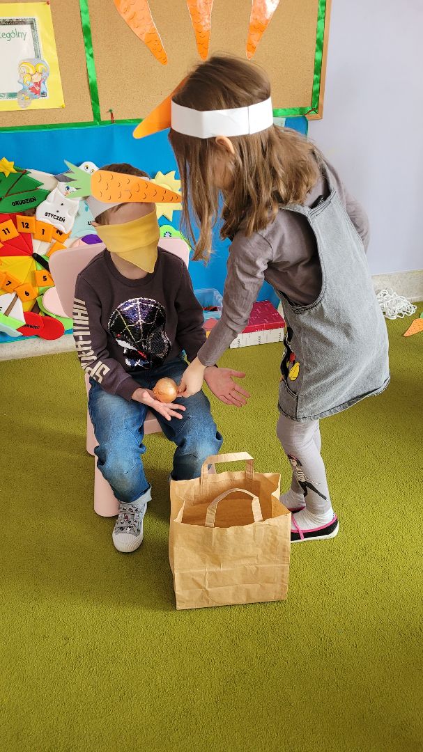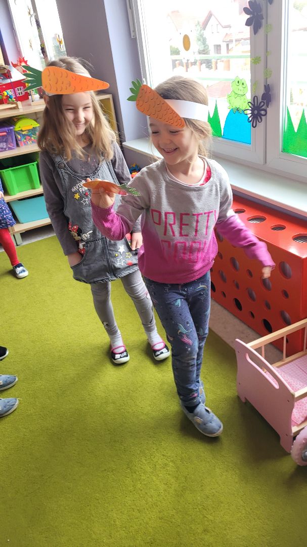To właśnie marchewka jest warzywem, które zawiera niezbędne dla zdrowia witaminy. Aby zachęcić dzieci do jej spożywania, zorganizowaliśmy w „Mandarynkach” „Święto Marchewki”, które przypada na dzień 4 kwietnia. Głównym celem spotkania było promowanie spożywania warzyw, poszerzanie wiedzy na temat marchwi i jej odżywczych właściwości. W tym dniu naszym znakiem rozpoznawczym były marchewkowe opaski, które towarzyszyły nam podczas wspólnych zabaw. Mieliśmy także szczególnego gościa – Panią Bożenkę. Pani Bożenka przeczytała dzieciom wiersz pt. ‘Marchewka” oraz pomogła przygotować przepyszny sok z marchwi i jabłek, będący źródłem samych witamin.