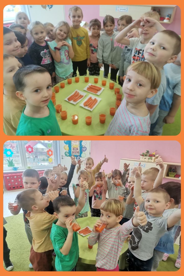 W tym tygodniu było niezwykle zdrowo i sportowo, a to za sprawą obchodów: „Święta Marchewki”, „Międzynarodowego Dnia Sportu” i „Dnia Zdrowia”. W toku różnorodnych działań i zabaw Mandarynki utrwalały wiadomości na temat potrzeby dostarczania swojemu organizmowi niezbędnych witamin i składników mineralnych; uświadomiły sobie, że prawidłowe odżywianie jest bardzo ważnym czynnikiem warunkującym zdrowie, wykonały „zdrowe słoneczka”, chrupały soczyste jabłuszka, delektowały się smakiem pysznego i niezwykle odżywczego soku marchewkowego oraz doskonaliły wybrane umiejętności matematyczne przeliczając, porównując i segregując marchewki. Dopełnieniem naszych niezwykle zdrowych i sportowych doświadczeń był aktywny udział w „przedszkolnym aerobiku” (w ramach realizacji ogólnopolskiej akcji edukacyjnej „Zdrowo i Sportowo”). To był niezwykle aktywny i pełen świątecznego nastroju tydzień…