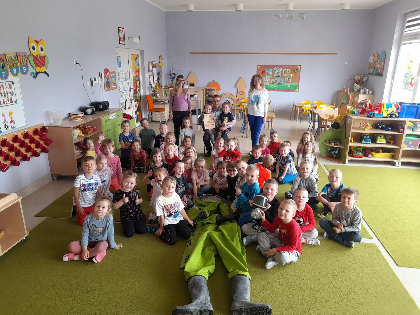 19 maja odwiedził grupę Limonek i Mandarynek tata Rafała i Antosia. W ciekawy sposób przedstawił nam swój zawód. Tata chłopców pracuje w dużej firmie, gdzie produkowane są napoje gazowane. W swojej pracy doczynienie ma z niebezpieczną substancją w związku z tym zakłada maskę przeciwgazową oraz kombinezon, który zaprezentował dzieciom. Przedszkolaki były pod ogromnym wrażeniem. Serdecznie dziękujemy!
