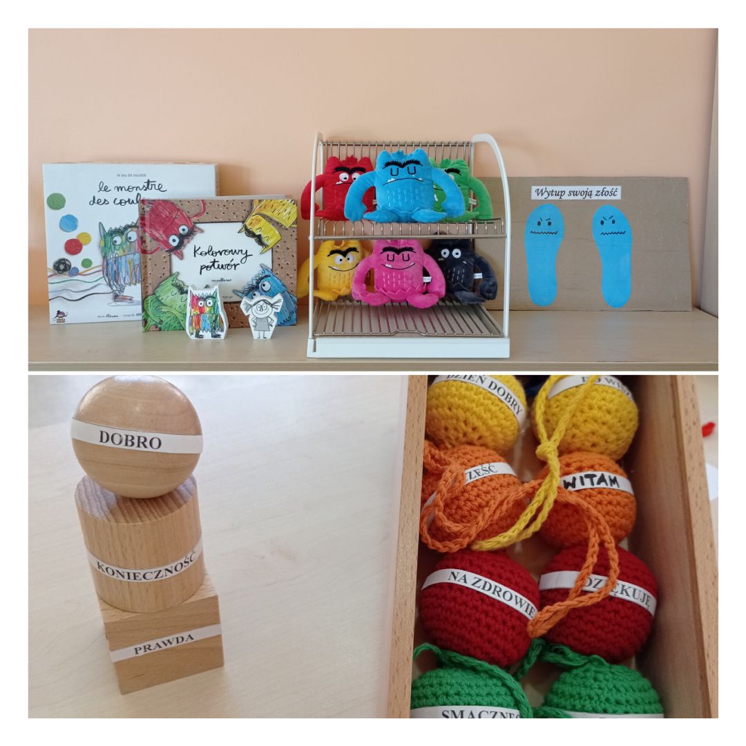 - Wzbogaciliśmy nasza salę o nowy kącik: ,,Kącik Emocji'', w którym rozgościły się pluszaki przedstawiające różne emocje.