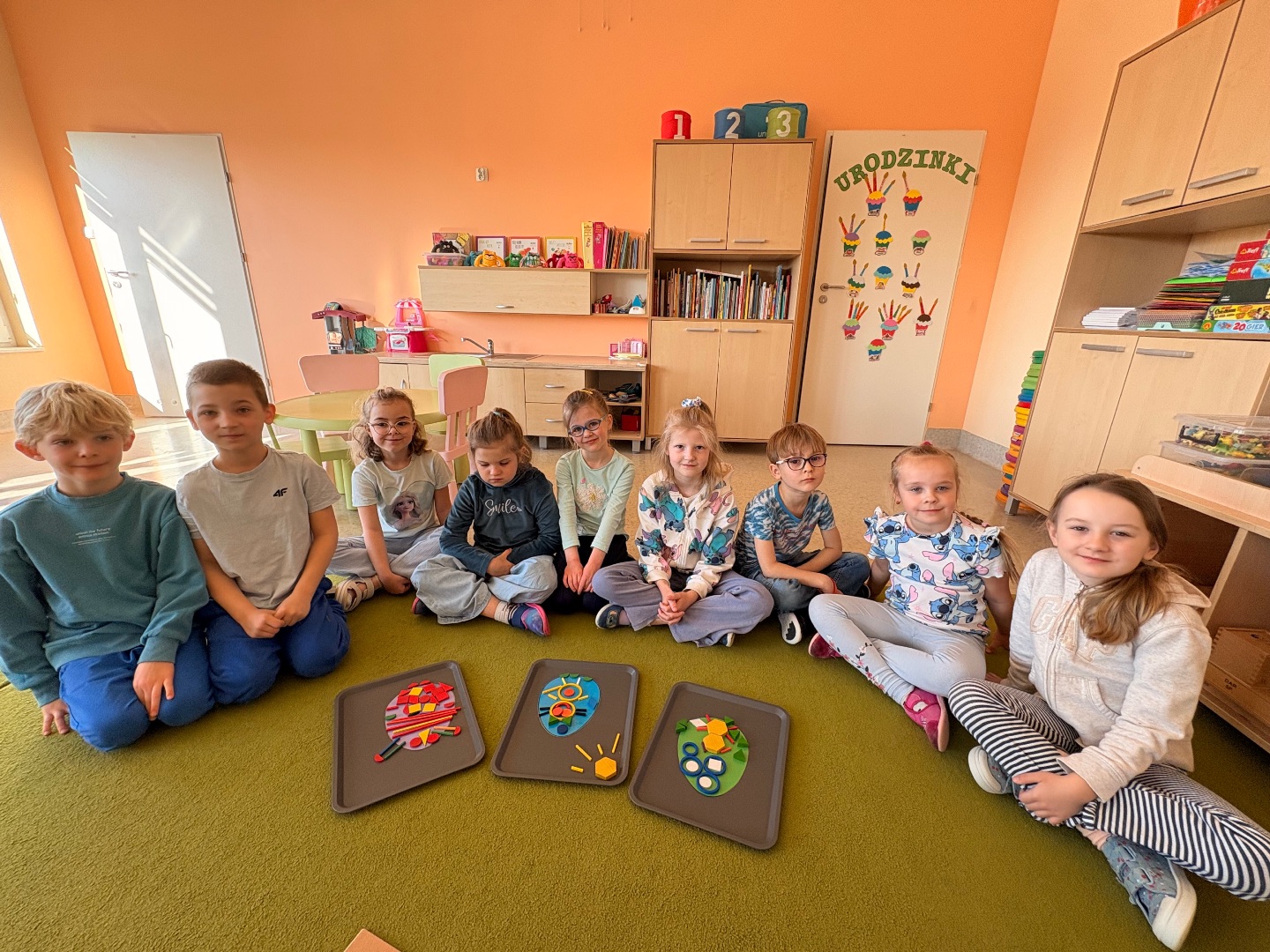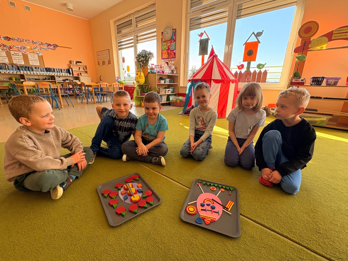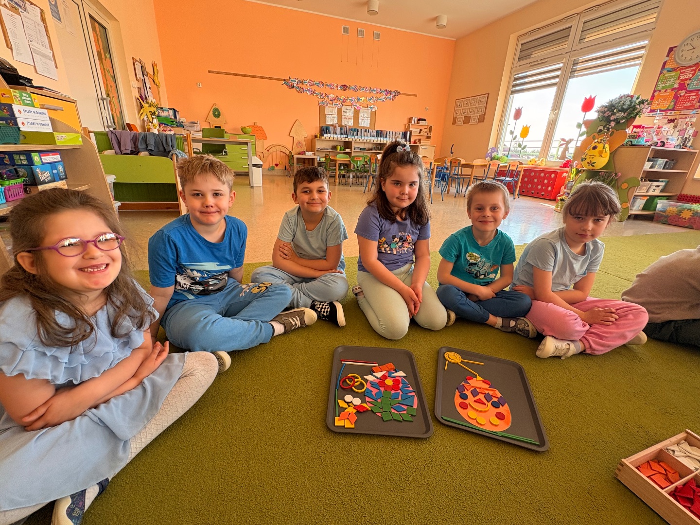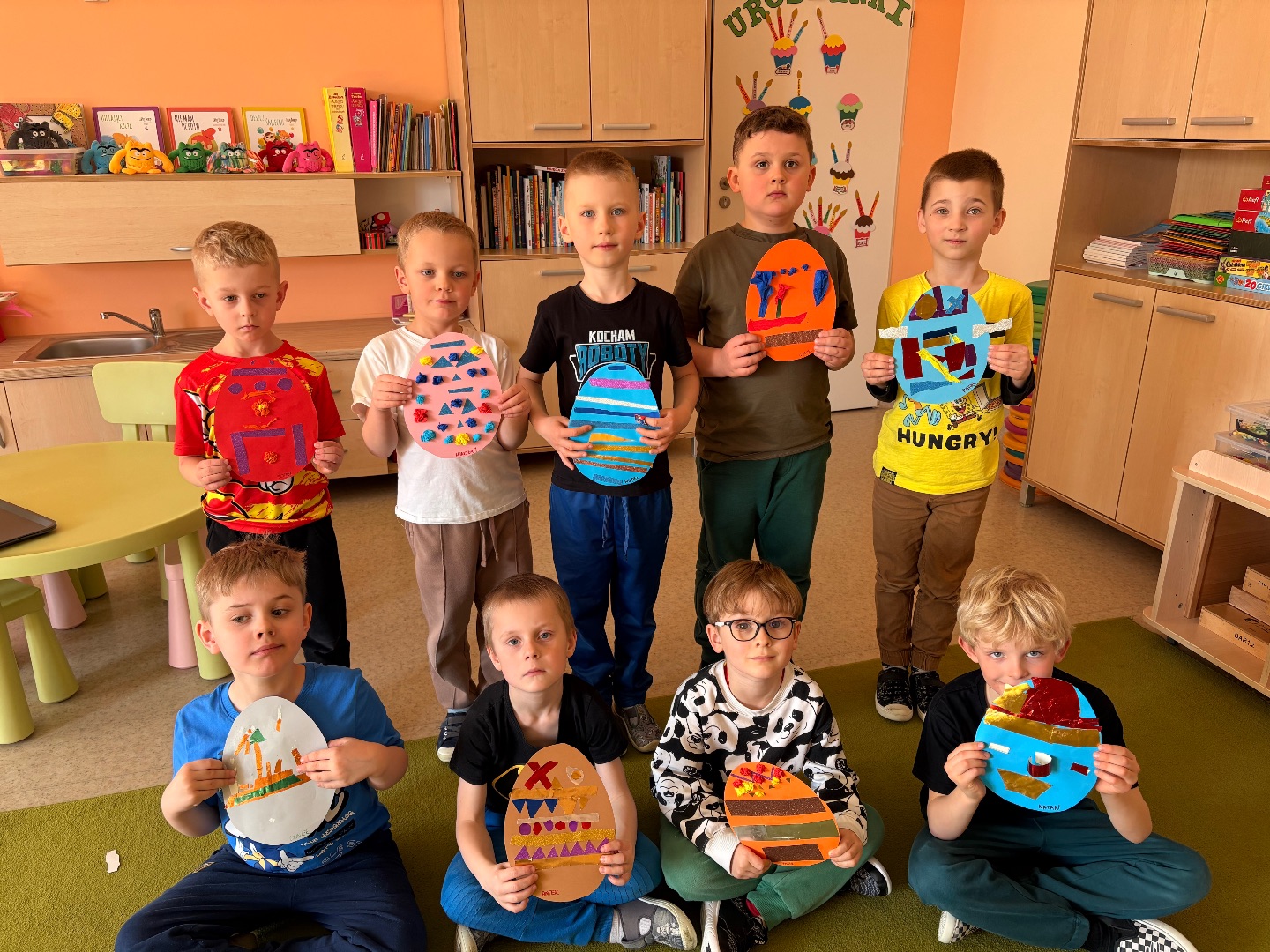Nie zabrakło również aktywności twórczych – dzieci układały pisanki z darów Froebla, rozwijając przy tym swoją wyobraźnię, kreatywność oraz zdolności manualne. Powstały piękne, kolorowe kompozycje, z których dzieci były bardzo dumne.