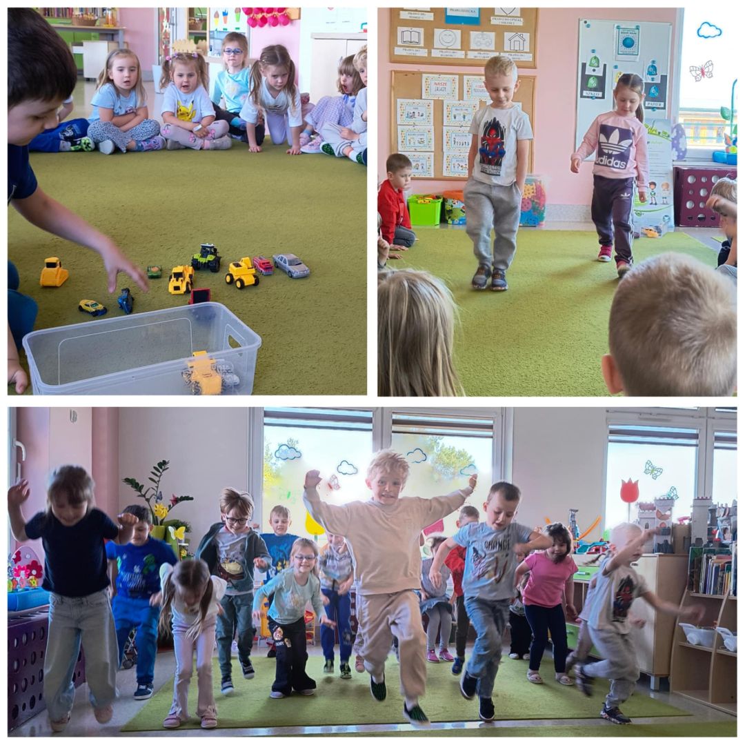Wszystkim zabawom matematycznym towarzyszy zawsze ruch i muzyka. Utrwalaliśmy, kierunki, strony ciała,  zapamiętywanie prostych sekwencji ruchowych.