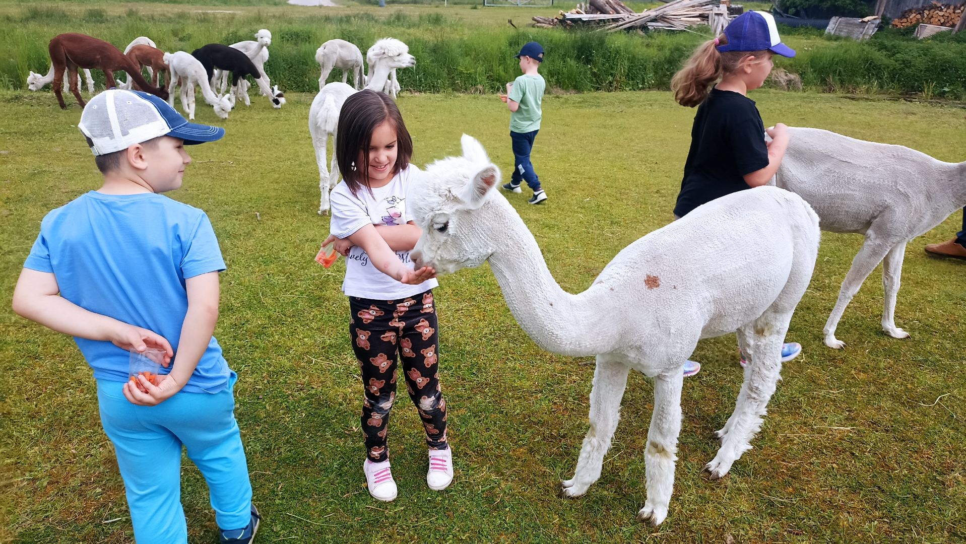 14.05.2024 ,,Ananasy'' wybrały się na całodniową wycieczkę do gospodarstwa wiejskiego ,,Alpaki z Różanej Zagrody'' w Filipach. Będąc w Różanej Zagrodzie zostaliśmy oprowadzeni po gospodarstwie oraz mieliśmy możliwość obcowania ze zwierzętami i przyrodą. Zdobyliśmy wiedzę na temat opieki nad alpakami, kucykami, kozami czy królikami. Mogliśmy przy tym pokarmić zwierzęta. Oprócz przebywania ze zwierzętami były również warsztaty plastyczne robienia magnesów z alpaką oraz czekało na nas przygotowane ognisko - mogliśmy upiec kiełbaski, parówki czy bułeczki. Po posiłku był czas na wspólne zabawy integracyjne. To był niezwykle spędzony czas, który na pewno pozostanie wszystkim dzieciom i ,,Ananasowym'' paniom w pamięci!